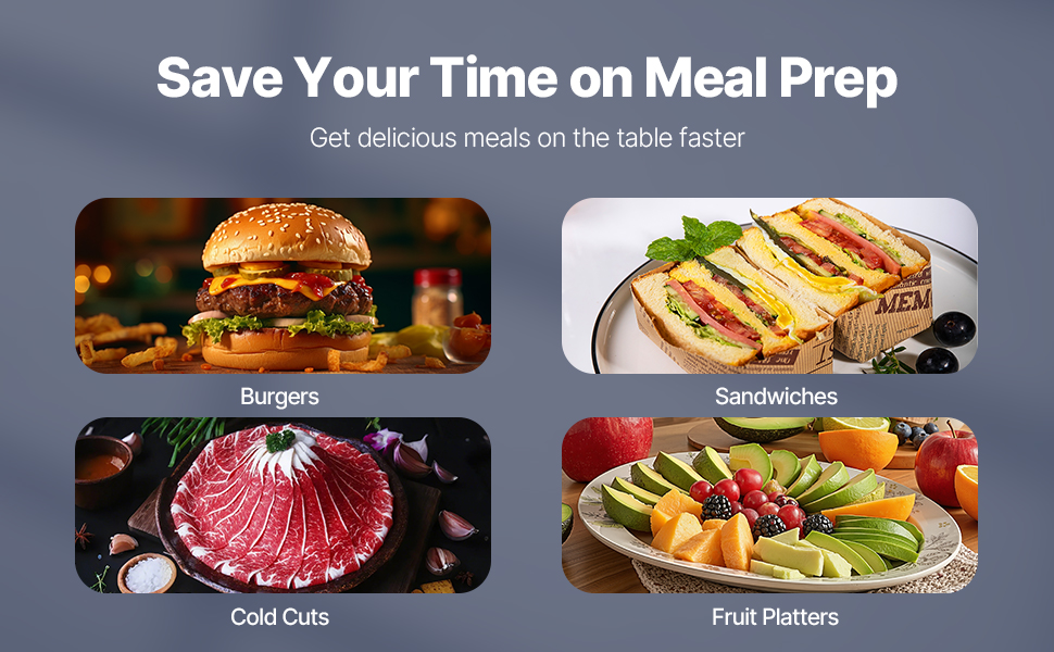 Take the hassle out of meal prep with our frozen meat slicer. Powered by a high-efficiency 180W motor and spinning at a smooth 95 RPM, it quickly slices through meat, cheese, bread, and veggies, giving you back your day.