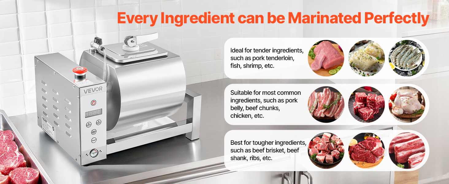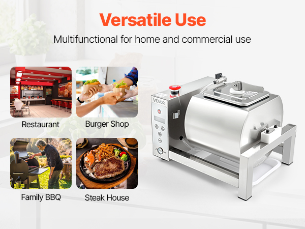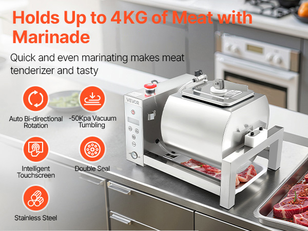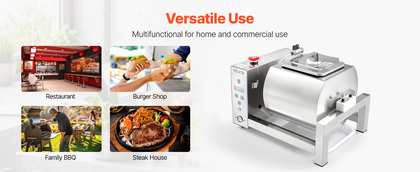 - Quick Marination: Featuring vacuum marination with -50Kpa vacuum pressure and bidirectional rotation, this meat tumbler marinator shortens marination time, ensures more even penetration of seasonings, and delivers superior flavor.