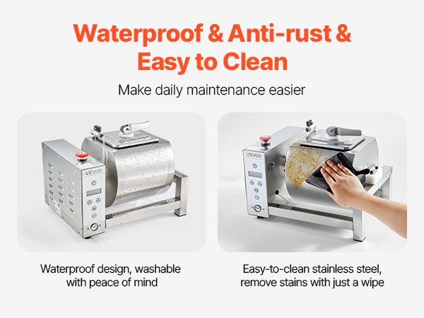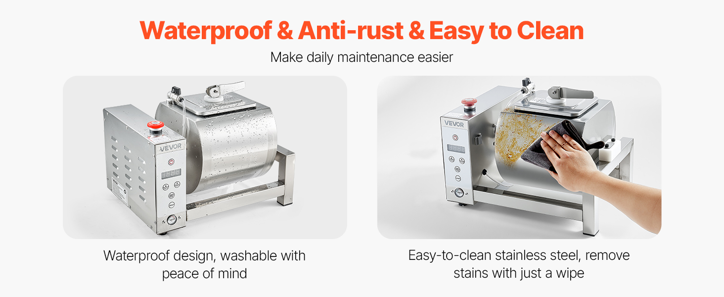 Made of durable stainless steel, our meat tumbler marinating machine is durable and anti-rust. It’s easy to maintain—just wash it with water or wipe it with a cloth to keep it clean and ready for use at all times.