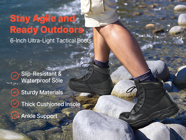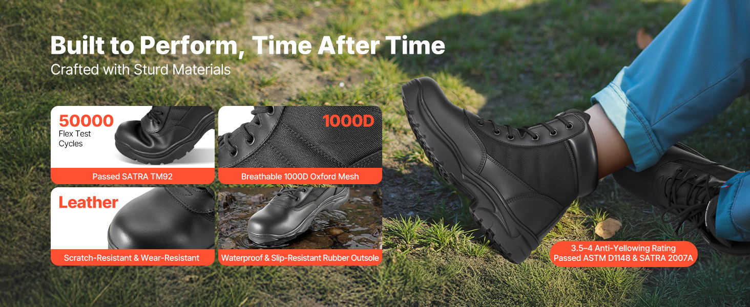- Lightweight & Breathable: Constructed with high-quality leather and 1000D Oxford fabric, these men's combat boots offer abrasion resistance and breathability, maintaining foot comfort and dryness during extended wear, enhanced by triple-stitched seams for superior durability.