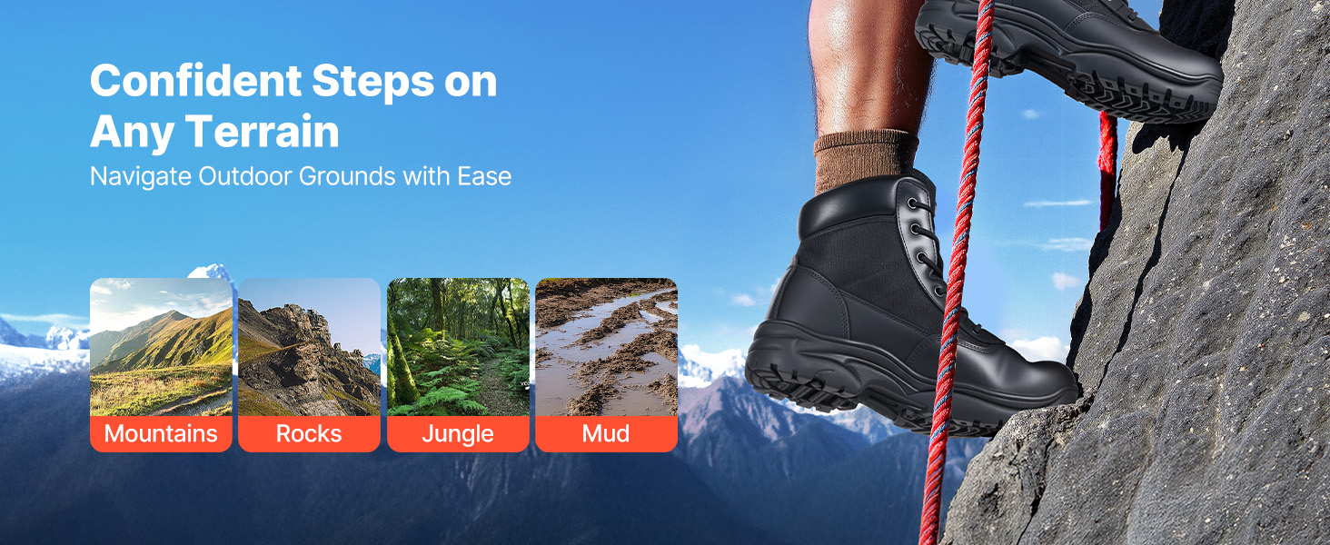 Suitable for camping, hiking, cycling, or hunting, these boots can handle a wide range of outdoor needs, providing solid support and protection for every outdoor exploration and challenge.