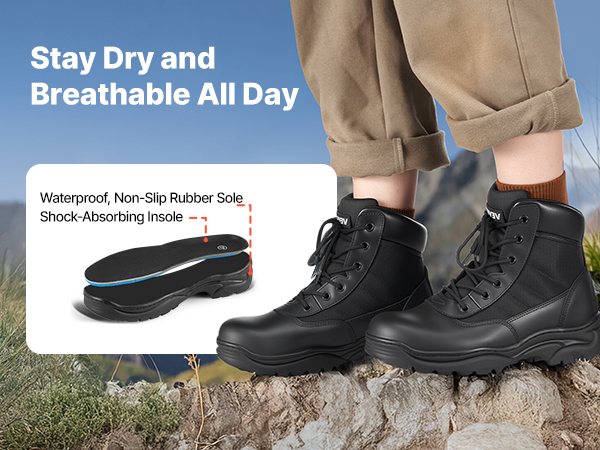 - Cushioned Insole: Featuring a detachable, thickened insole for shock absorption and soft support, these tactical work boots reduce foot fatigue. The breathable insole keeps the interior fresh and is easy to clean and replace.