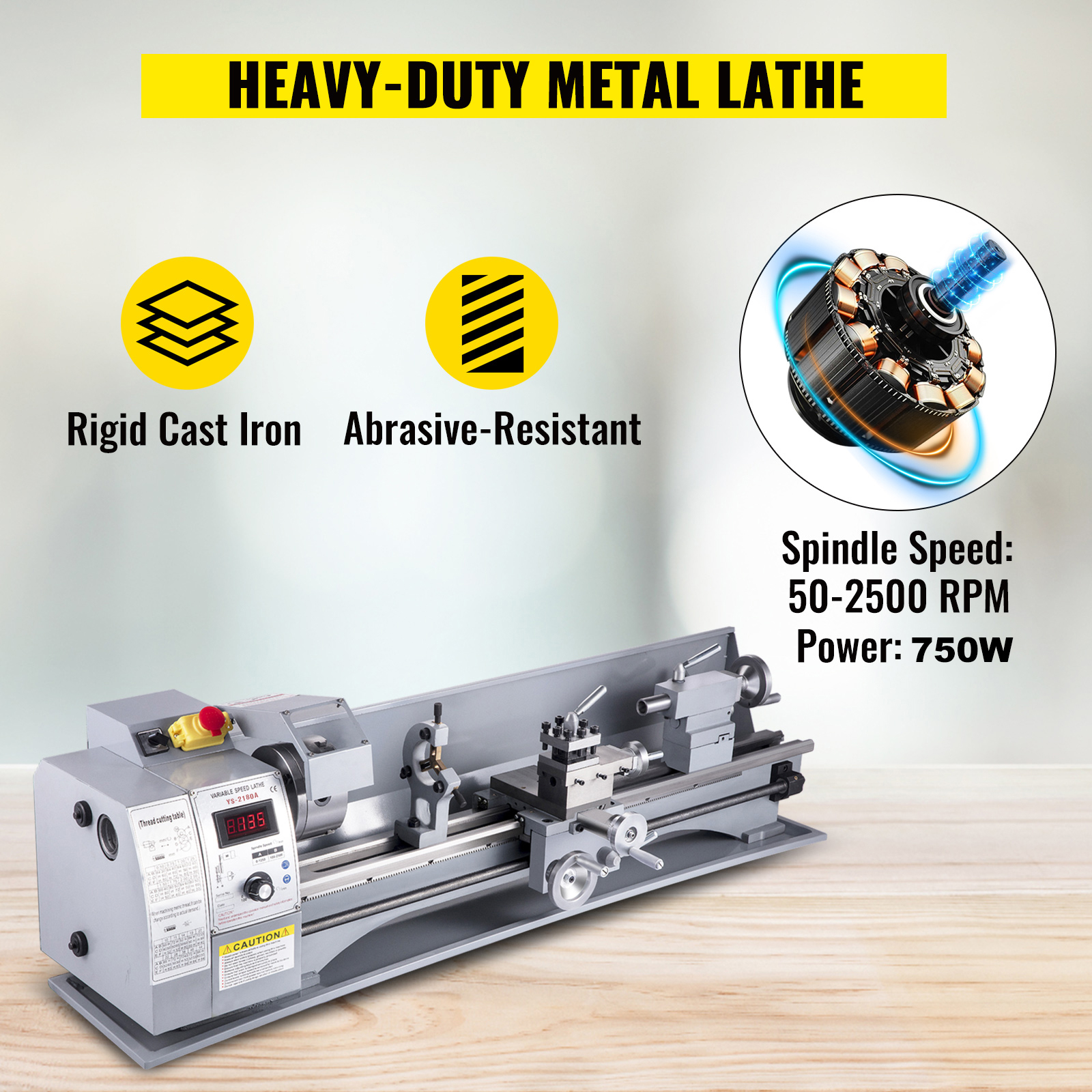 - Sturdy & Durable Construction: The mini lathe is made of high-quality HT200 cast iron, which withstands tear and wear. It is equipped with a 750W motor that delivers substantial power. Ideal for model-making, it serves as a precise and reliable assistant.