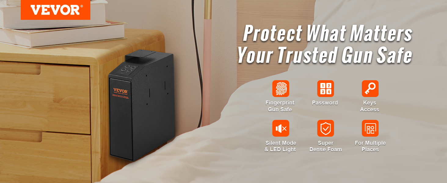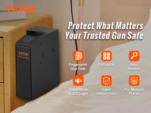 This is very well built gun safe that you can hide behind your dresser or maybe even your closet. Once programmed it can be opened with your fingerprint or a custom code you create yourself and it also has a key that can open it also. Comes with batteries and fairly easy to set up