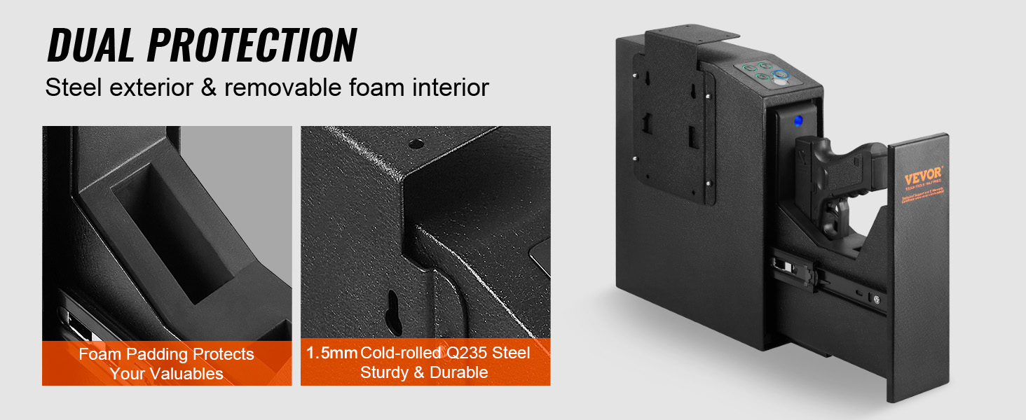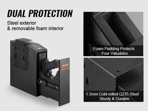 - Enhanced Interior Protection: The interior of our handgun safe features corrugated and flat foam lining, which are removable for added convenience. The 1.5mm thick Q235 cold-rolled steel plate provides durability and strength, ensuring your valuable items are surrounded and protected.