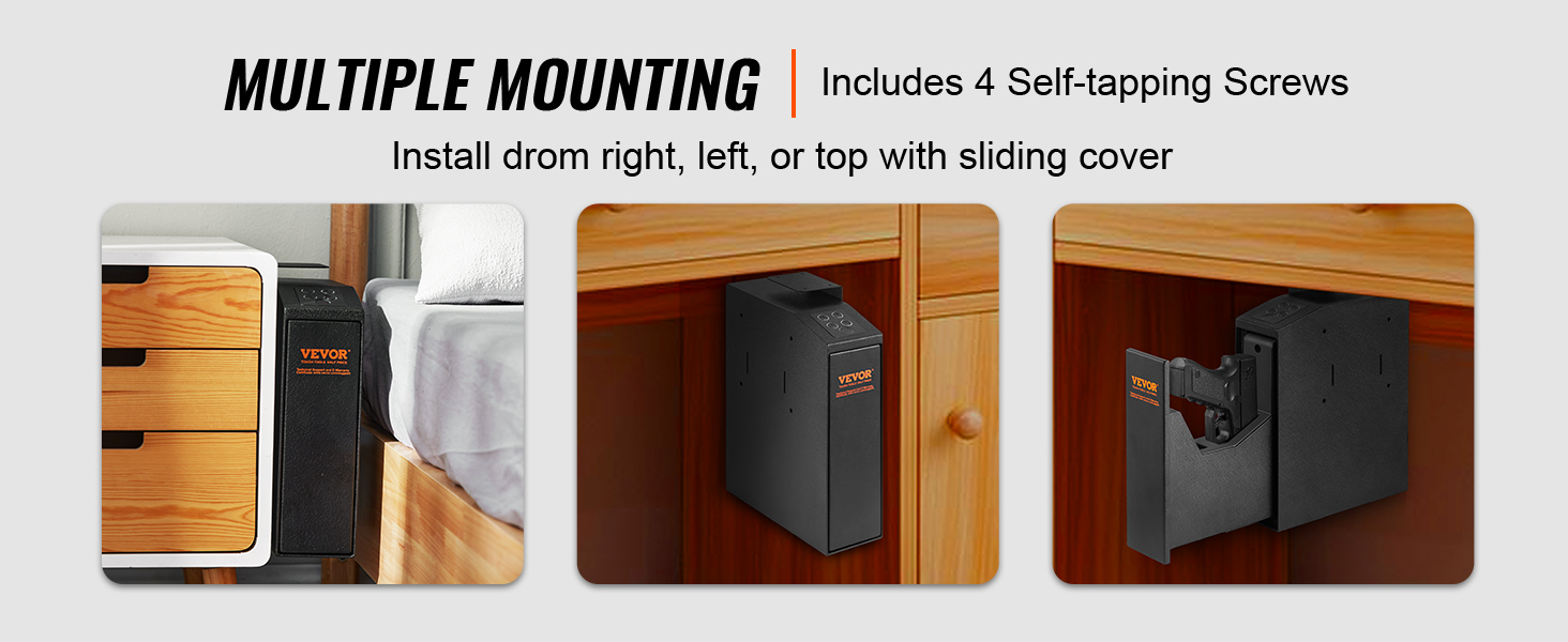 - Various Installation Options: The mounted gun safe for pistols includes four self-tapping screws and can be easily installed from the right side, left side, or top to accommodate diverse requirements. Installation is exceptionally convenient.