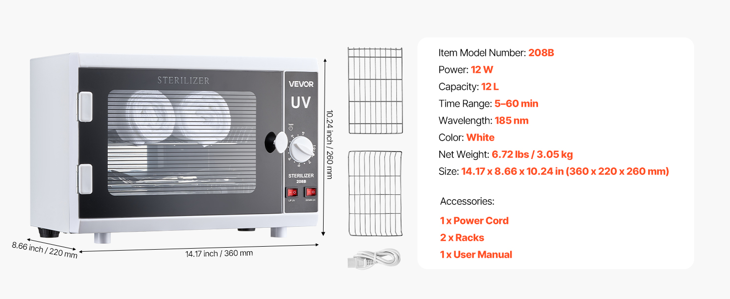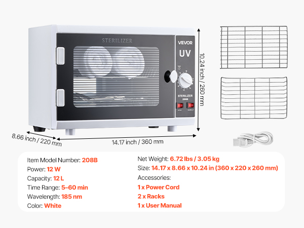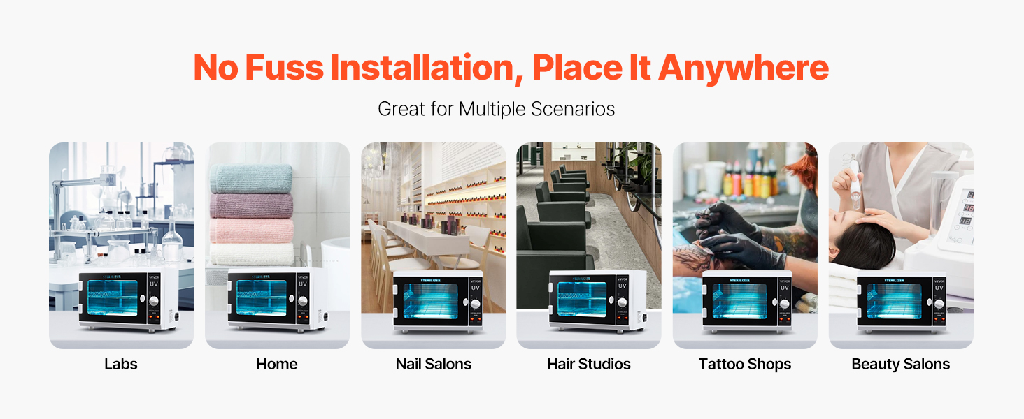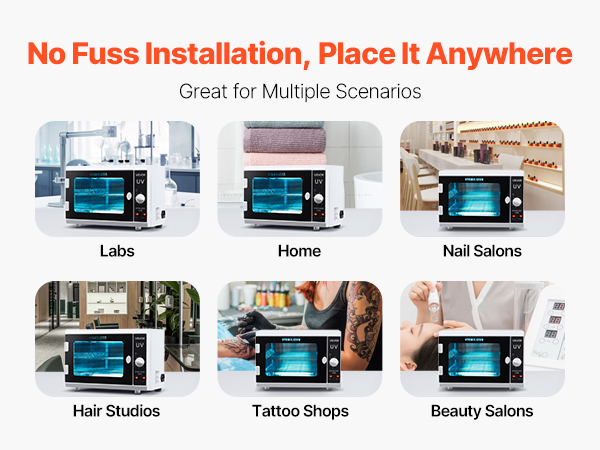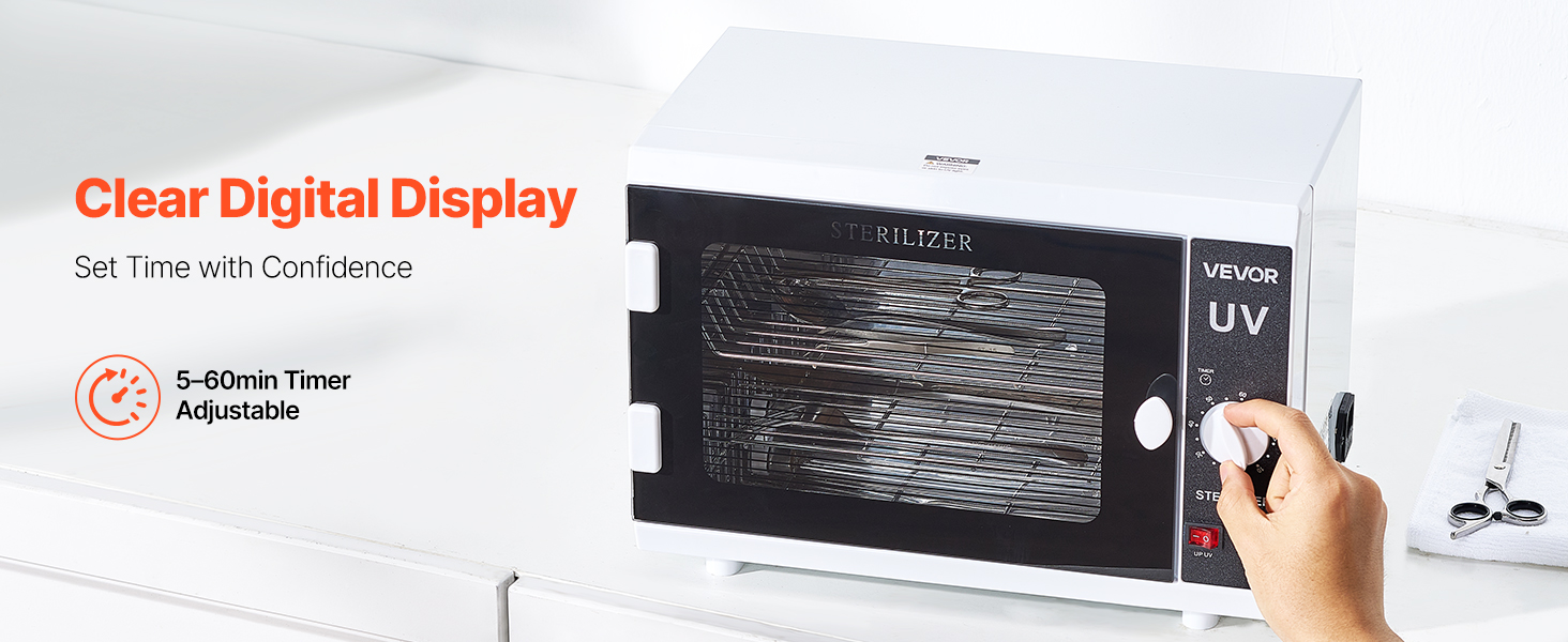 • Convenient Operation: The salon tools cleaning box features easy knob operation. With adjustable cleaning time (5–60 minutes) and independent control for upper and lower lighting, it meets diverse needs without supervision.