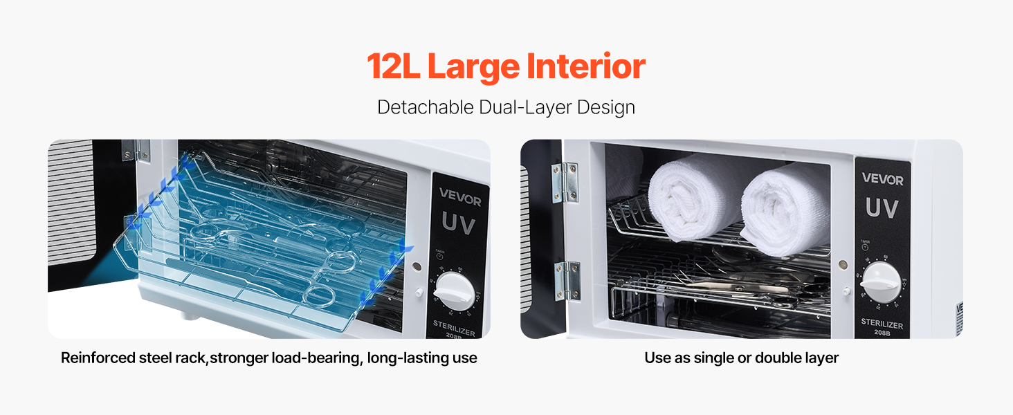 • Large Capacity with Dual Layers: With a 12L capacity and dual-layer design, the nail tool cleaning cabinet holds multiple items at once, fulfilling daily cleaning needs. The detachable layers provide flexibility for easy use.