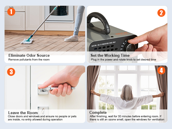- Intelligent Timing Control: This commercial ozone generator features a humidity display and a 0–120 minute timer function. Customize the required operating time up to 120 minutes, and utilize the “HOLD” mode for continuous operation. The humidity reminder alerts you to maintain a dry indoor environment for enhanced odor removal effectiveness.