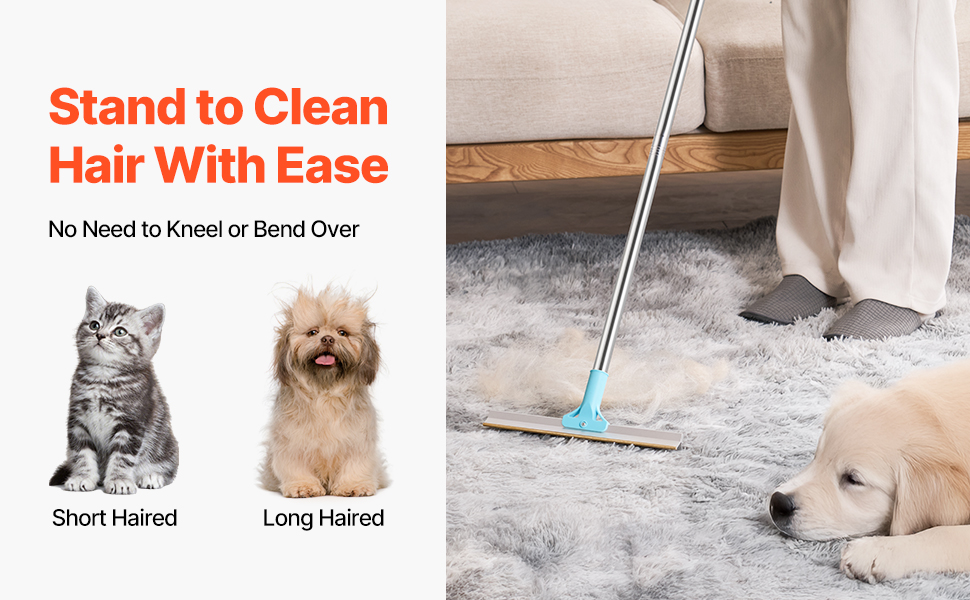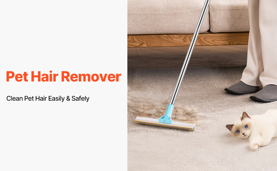 • Multi-Functional Design: This pet hair removal broom functions as a broom, brush, scraper, and remover. Simply press it down and push it forward across the carpet to easily clear stubborn, embedded pet hair, lint, and dust.