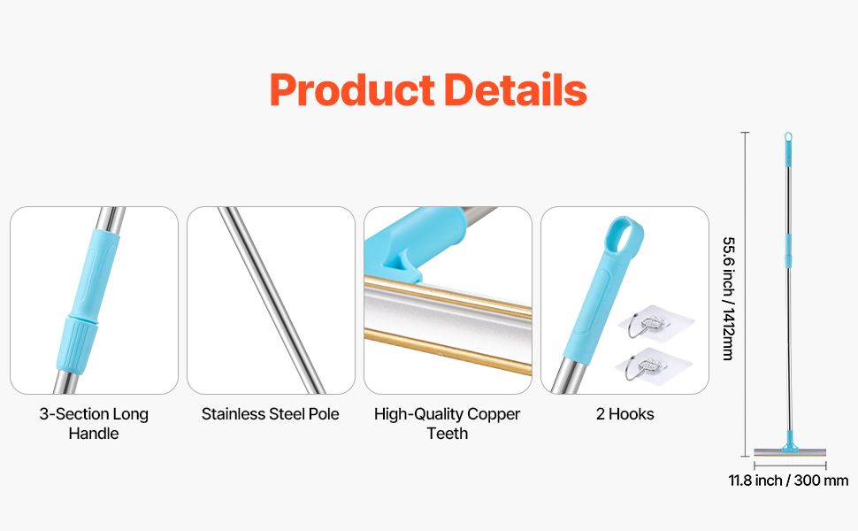 • No More Bending: Featuring a 3-section adjustable handle, this pet hair broom accommodates users of varying heights. Its extendable design ensures comfortable cleaning for both adults and children, eliminating the need to bend or kneel.