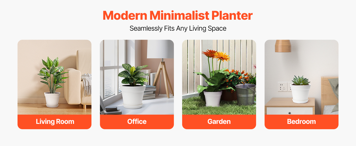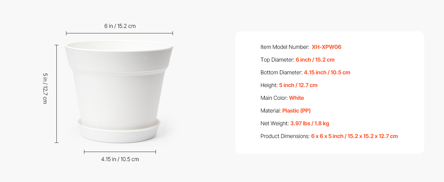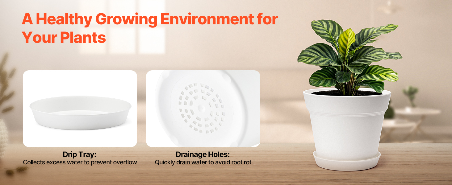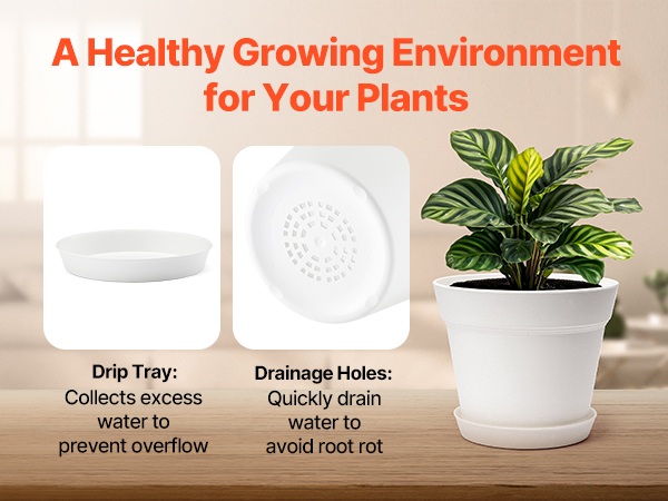 - Removable Saucer: Each plastic plant pot comes with a matching saucer that collects excess water and soil overflow, preventing water stains or damage to surfaces. This makes plant care easier and helps keep your space neat and tidy.