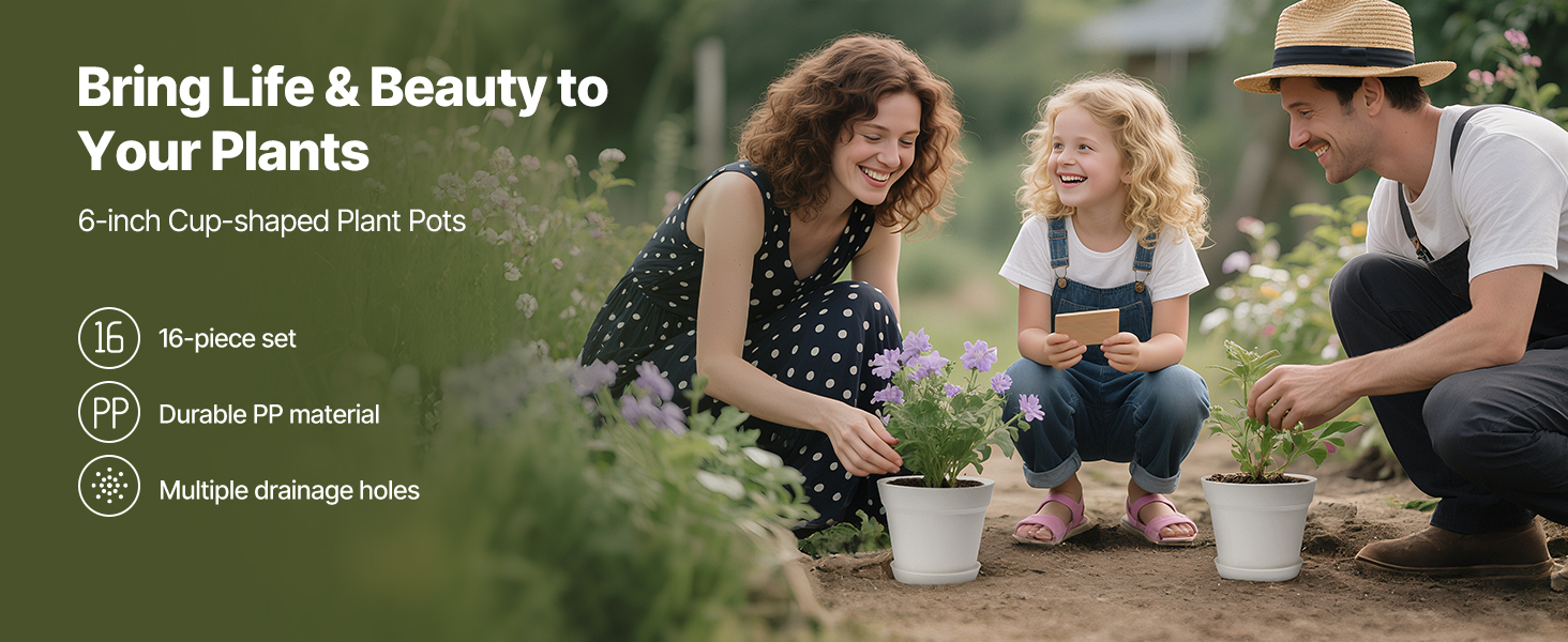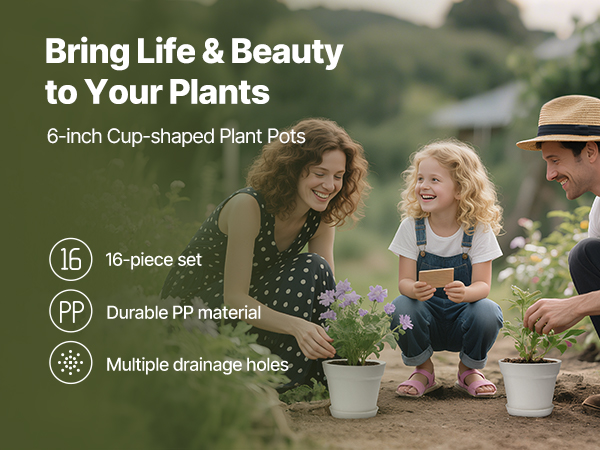 Made from thickened PP material, these 16pcs plastic planters are durable and weather-resistant, ideal for growing a variety of flowers and vegetables. The drainage hole prevent water buildup and promote healthy root growth and removable saucer to keep your space clean and tidy.