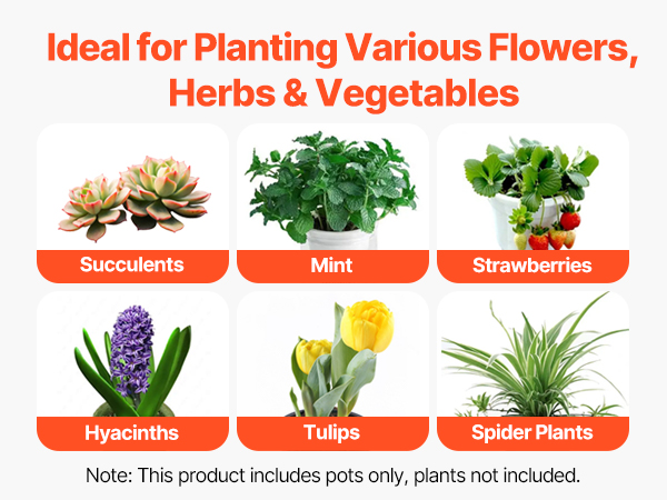 Ideal for succulents, mint, strawberries, hyacinths, tulips, spider plants, and more. This flower pot meets diverse planting needs. Please note: This product includes the pot only; plants are not included. You can freely choose your favorite plants to create your own green oasis.