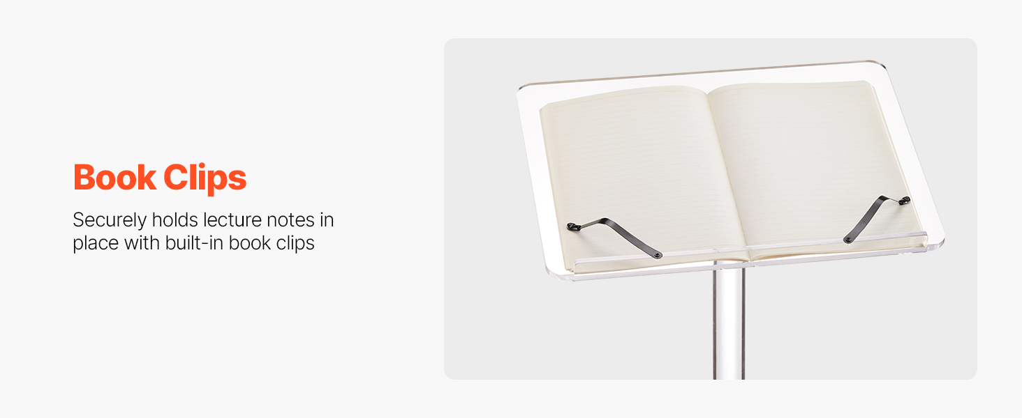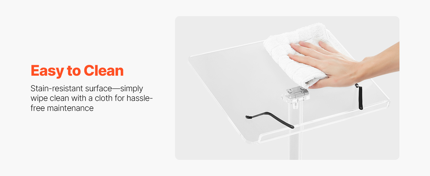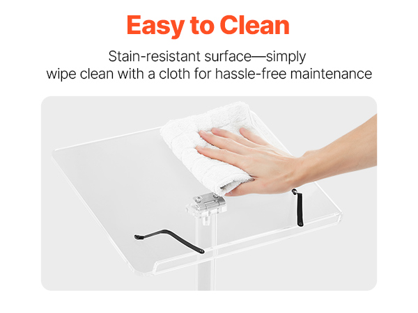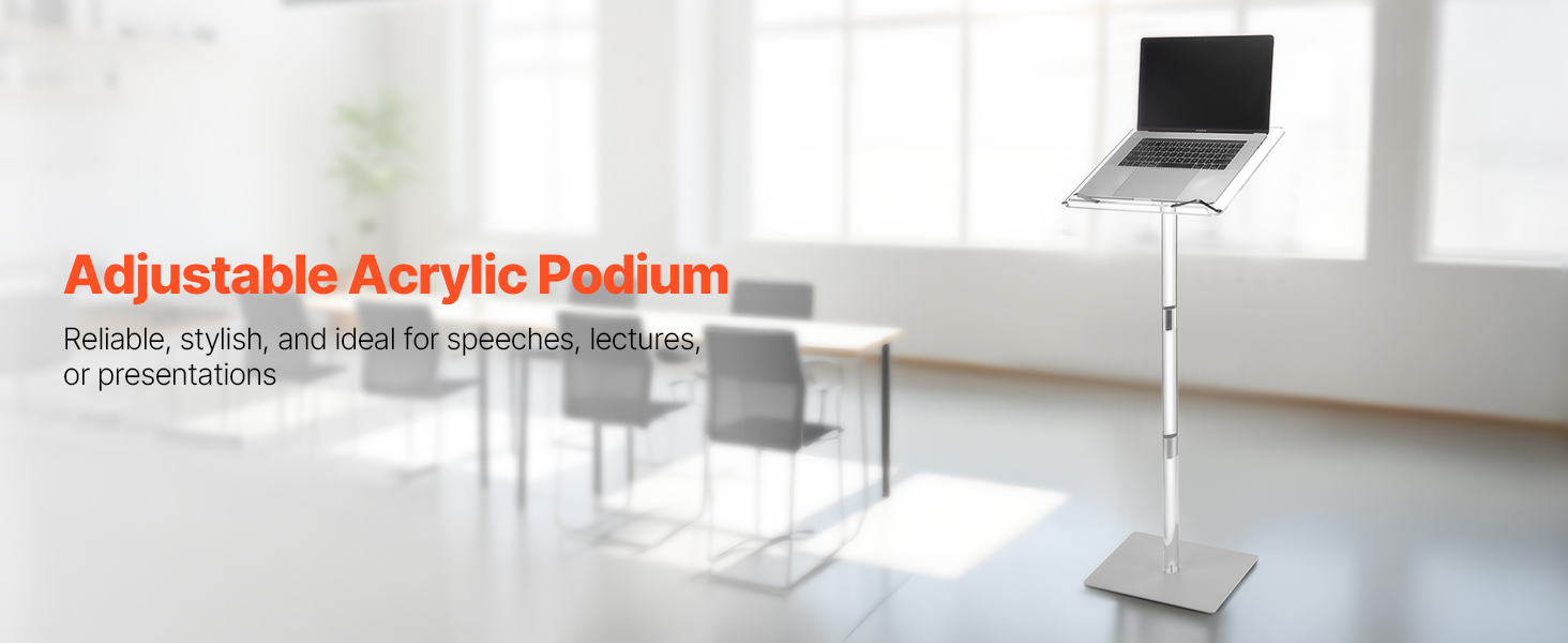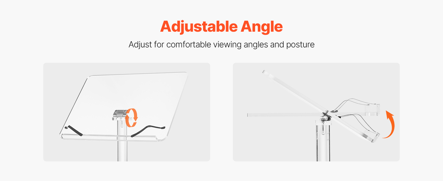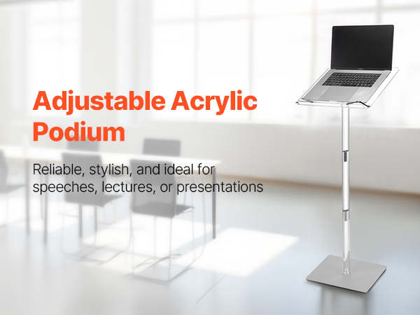 - Tilting Desktop, Better View: This acrylic podium features an adjustable desktop angle to suit standing or seated positions. Easily find a comfortable view for reading notes or speaking, so you can engage your audience without bending or straining.
