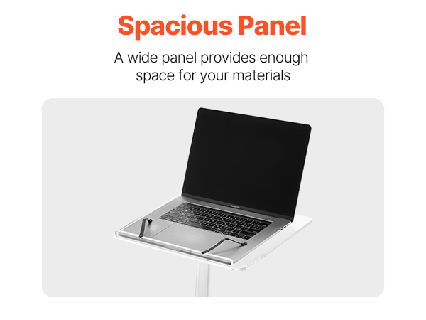- Spacious & Practical Design: This standing podium features a 15.75 x 12.01 in desktop for laptops, notes, mics, or displays. Its 13.78×8.07 in metal base provides a sleek look and excellent balance