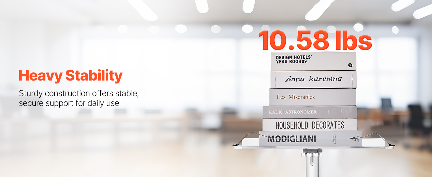 - Durable Acrylic Construction: This podium stand is built with sturdy acrylic designed for frequent use. A reinforced metal base provides enhanced stability and support, offering speakers a reliable platform for confident presentations.