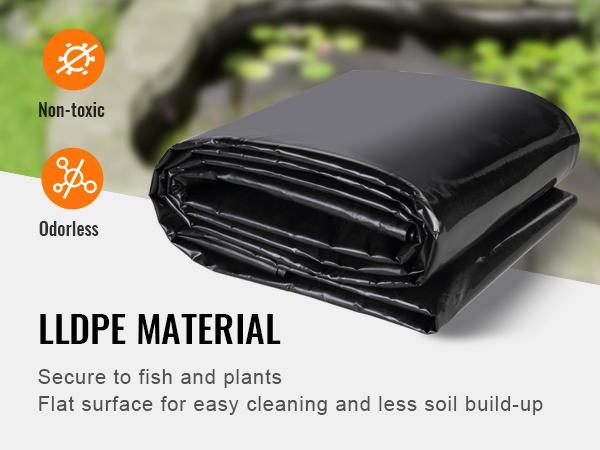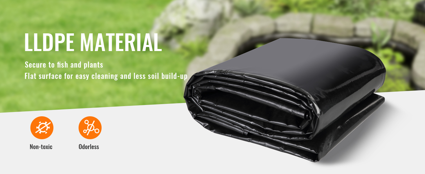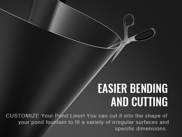 - Flexible & Pliable: Our pond lining is flexible and easy to bend and fold, making it suitable for almost any pond shape. Before purchasing, it's important to determine your pond's precise depth and width. We recommend buying a liner that's slightly larger than your pond. Any excess liner can be easily cut off after installation.