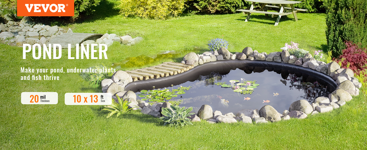 - Natural Pond Look: No tools required for installation. Suitable for a variety of water features, including water gardens, waterfalls, outdoor ponds, fish/koi ponds, and more. The liner can even be extended for use in planting beds and other self-watering projects.