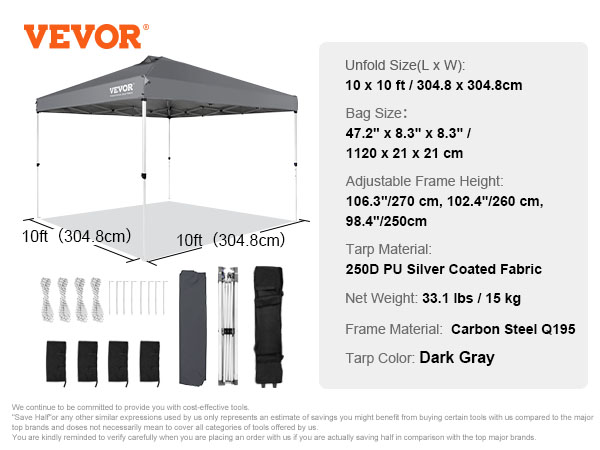 | Unfold Size(L x W) | 10 x 10 ft / 304.8 x 304.8 cm |