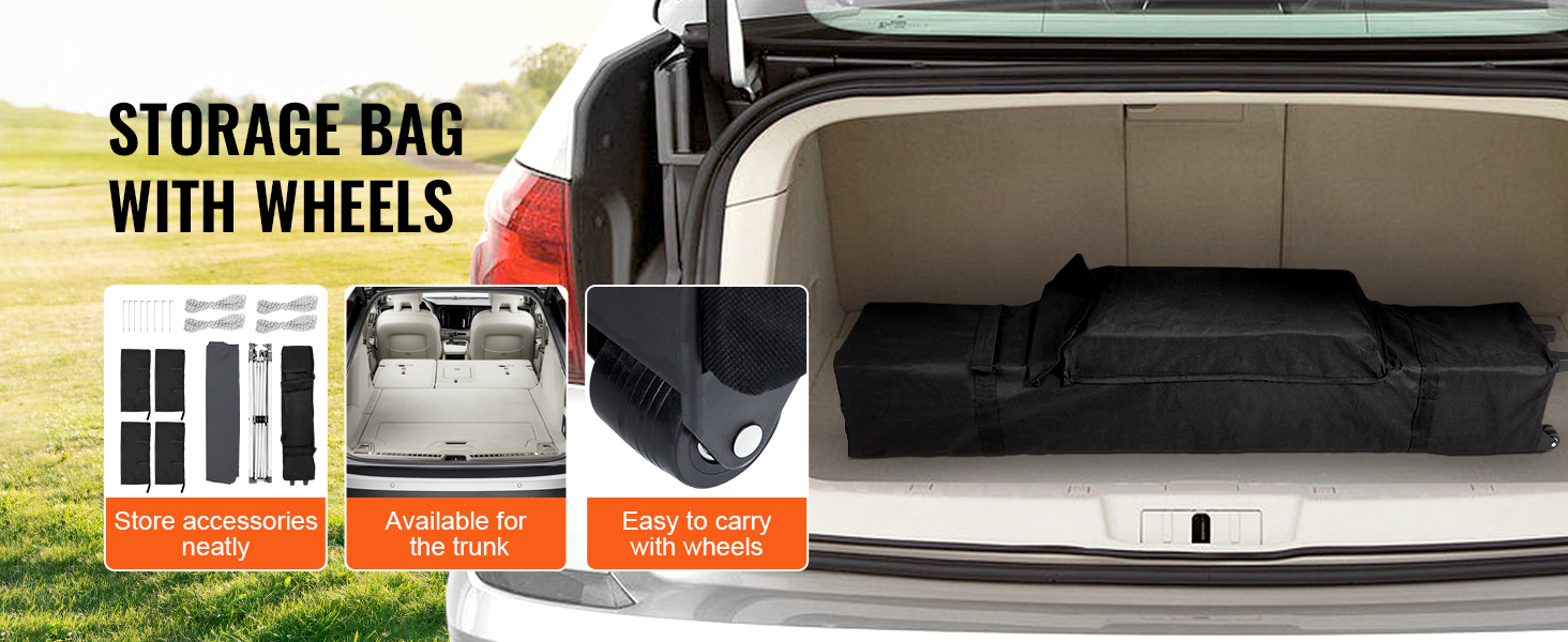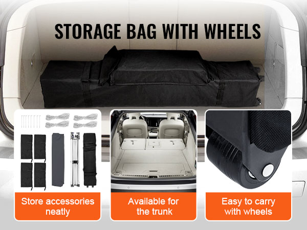 - Move on the Go: Portable Design — The pop-up canopy includes a wheeled storage bag and a specialized accessory bag holding 8 medium-sized ground nails and 4 ropes. When folded, it measures 47.2 x 8.3 x 8.3 inches (120 x 21 x 21 cm), enabling convenient transport and storage in most vehicle trunks.