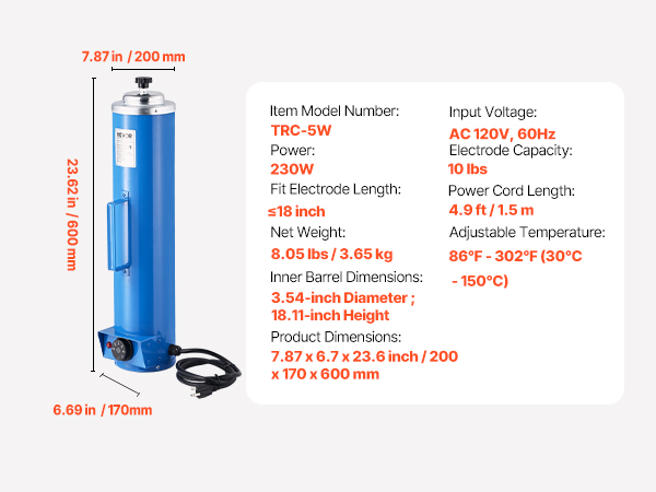 - Safe and Easy Carrying: The welding rod drying oven features a large side handle, enabling secure transport to various worksites. The 4.9ft extended power cord offers enhanced work flexibility.
