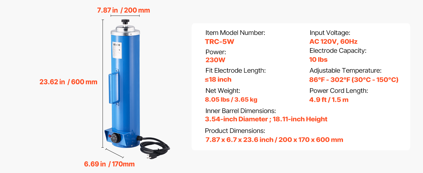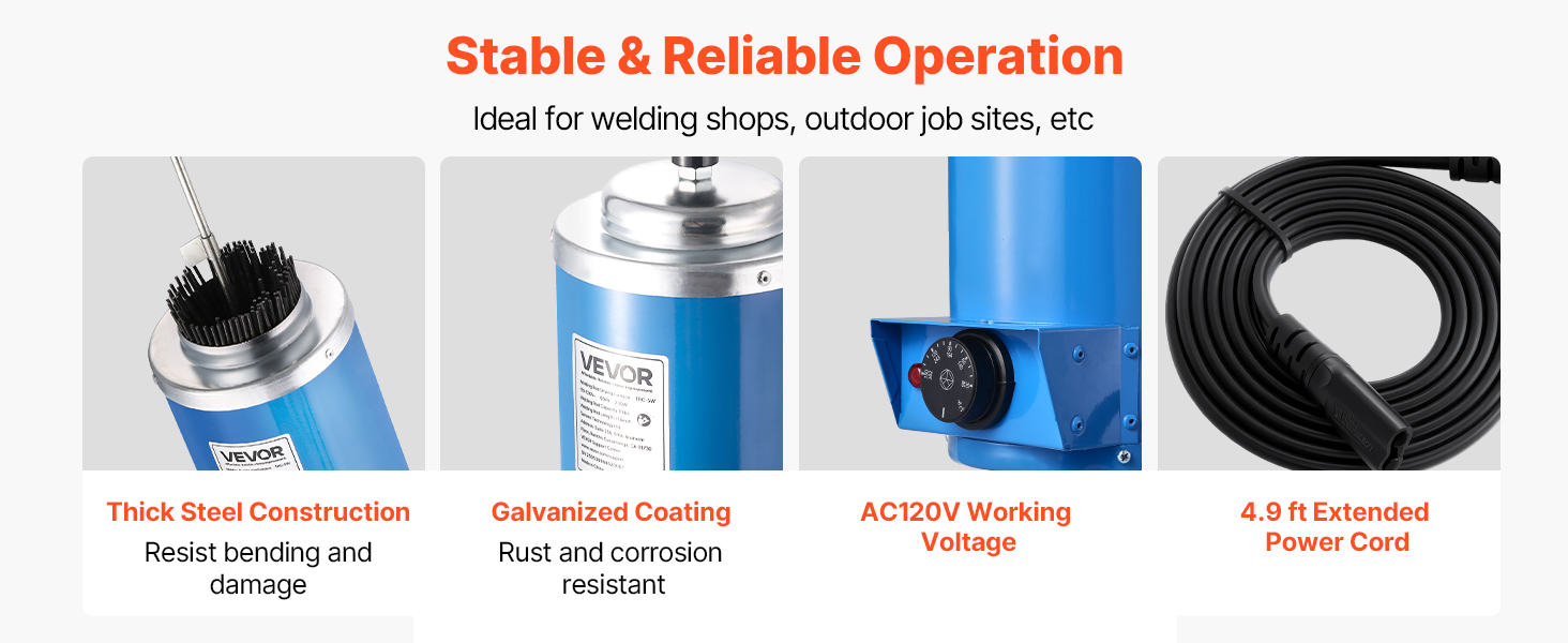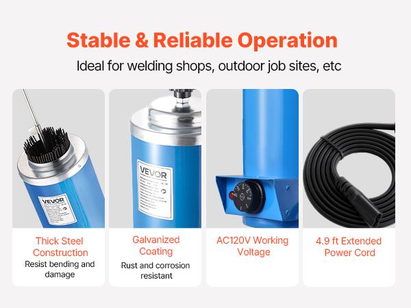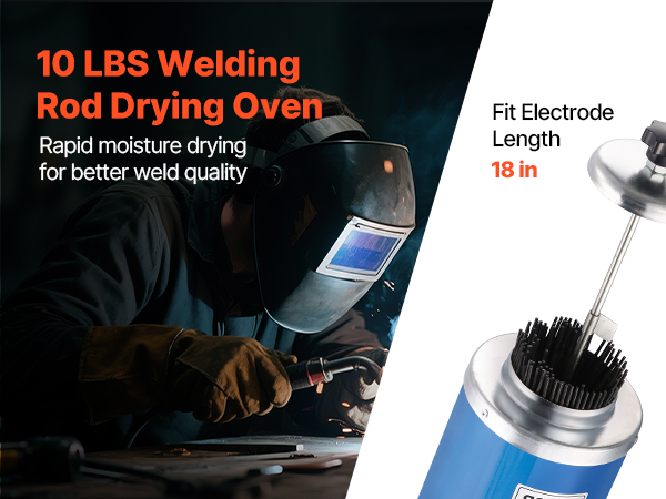 This VEVOR welding rod oven can hold up to 10 lbs of 18-inch electrodes, with a 230W high-power heating system for efficient drying. By keeping the rods dry, it reduces moisture-induced cracking and arc instability, extending the electrode lifespan and improving weld quality.