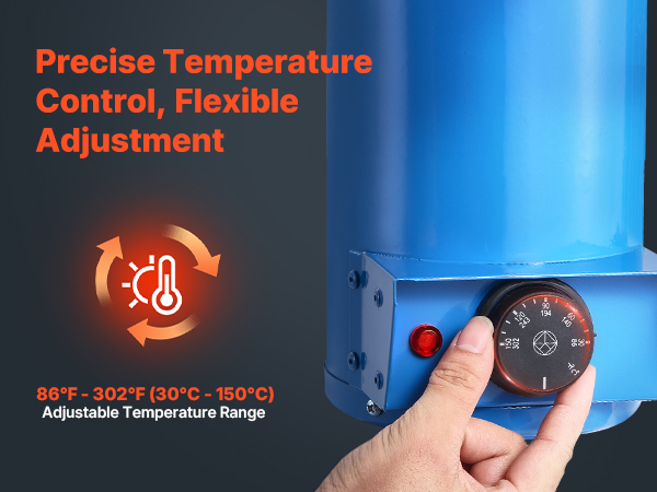 With the adjustable temperature knob, you can easily set the temperature between 86℉ and 302℉ (30°C – 150°C) to meet different needs, ensuring optimal drying results for improved welding quality.