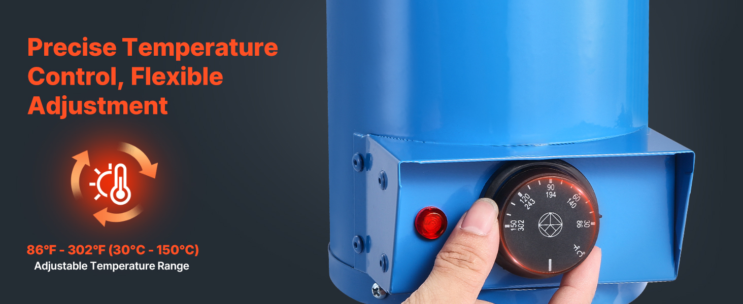 - Adjustable Temperature: This welding rod dryer features an adjustable temperature control knob with a range of 86℉ to 302℉ (30°C – 150°C), enabling precise setting of the ideal drying temperature for consistent, high-quality welds.