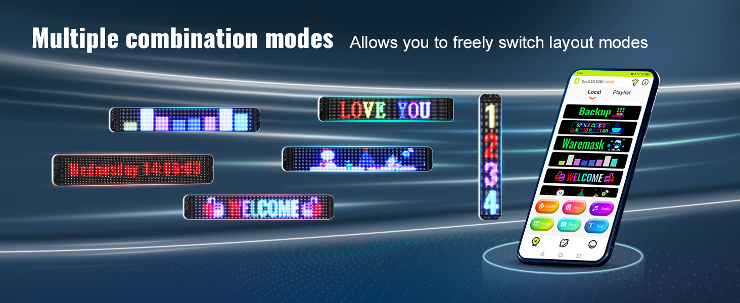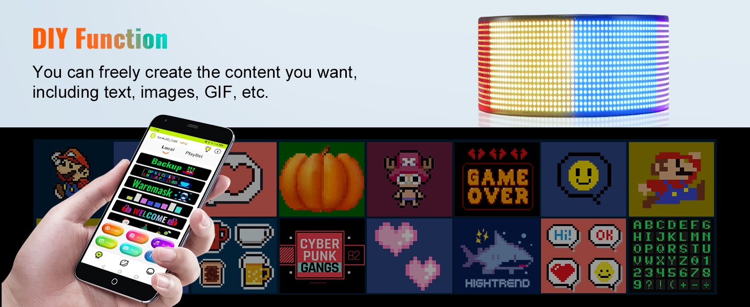 You can DIY design text, patterns, and GIF according to your own needs and scenarios, and also adjust the brightness and speed, perfectly meeting your own requirements.