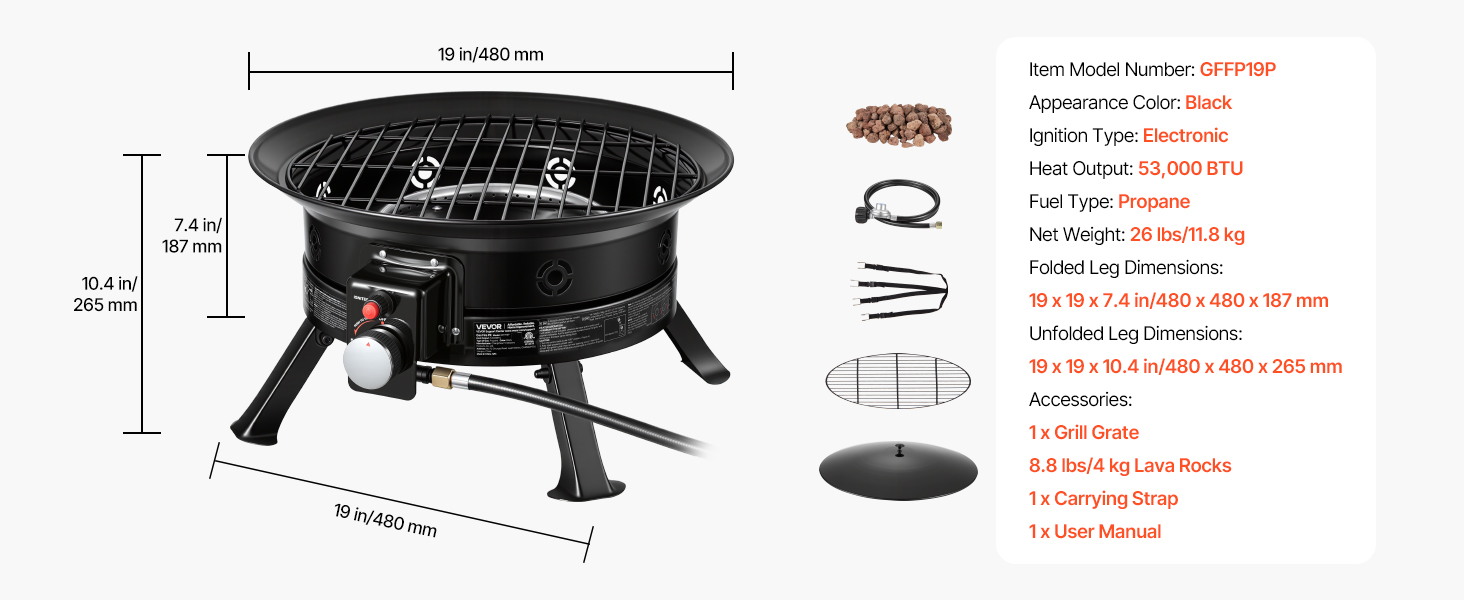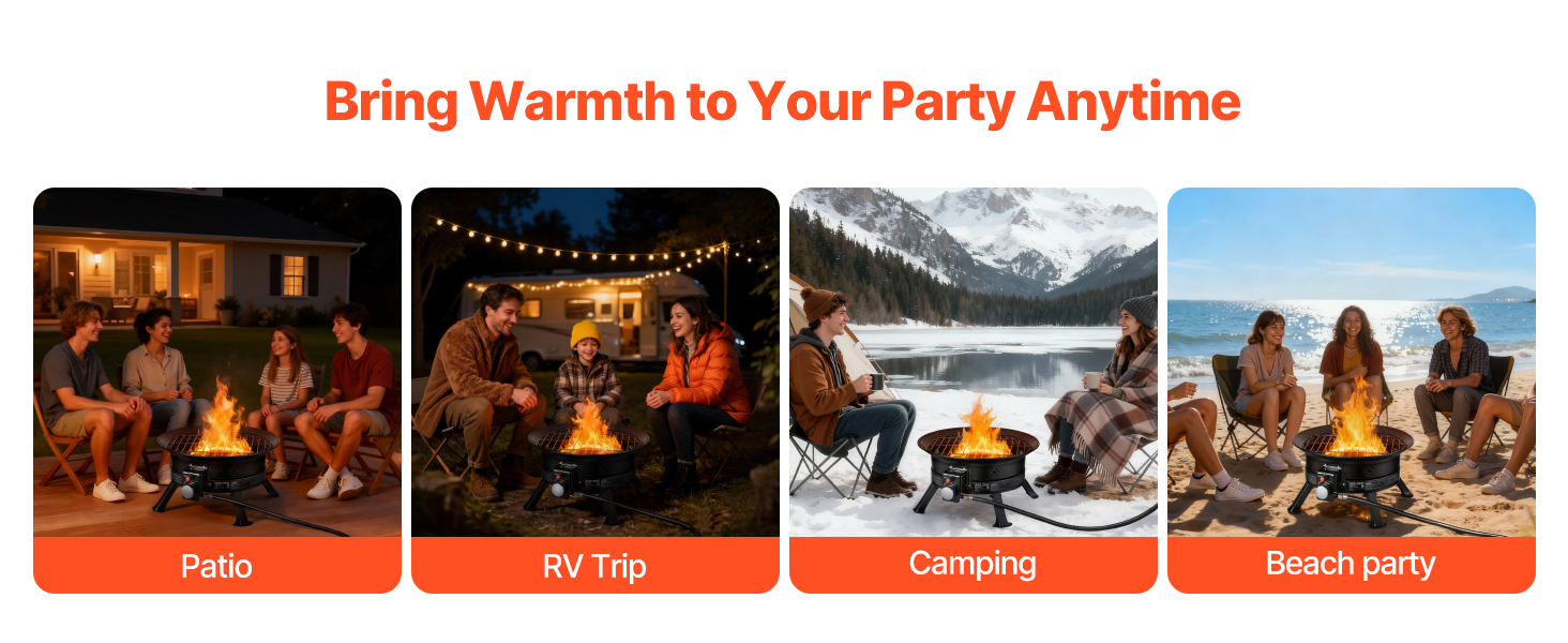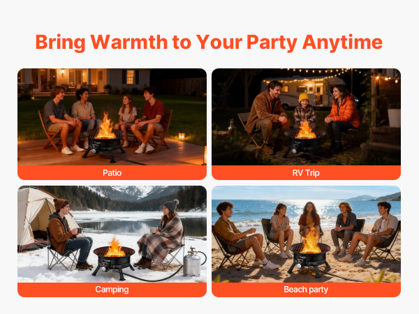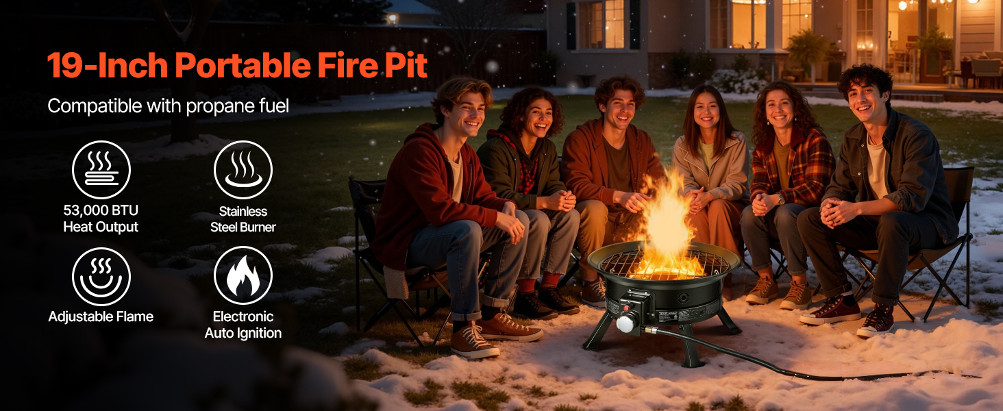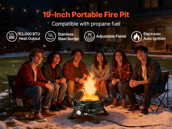 • Wide Applications: Our outdoor propane fire pit is available in a 19-inch size, ideal for camping, RV trips, beach parties, garden patios, and more