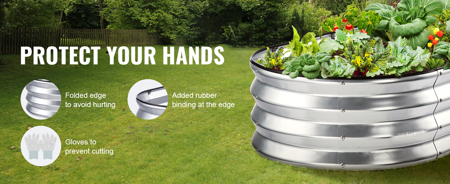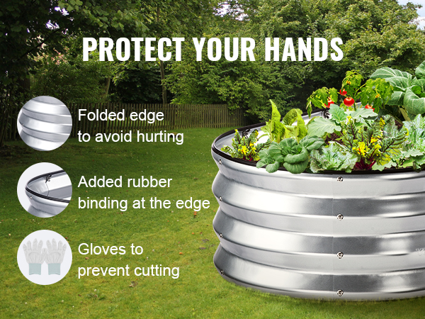 - Your Security Comes First: You no longer have to endure hand injuries while gardening. You will be ready to create the perfect garden and show off your skills! The edges of our raised garden bed are all folded and feature rubber strips, preventing injuries and fatigue. We also provide gloves to ensure your security during installation and gardening. It's about time you brought your garden to life.