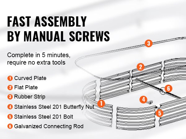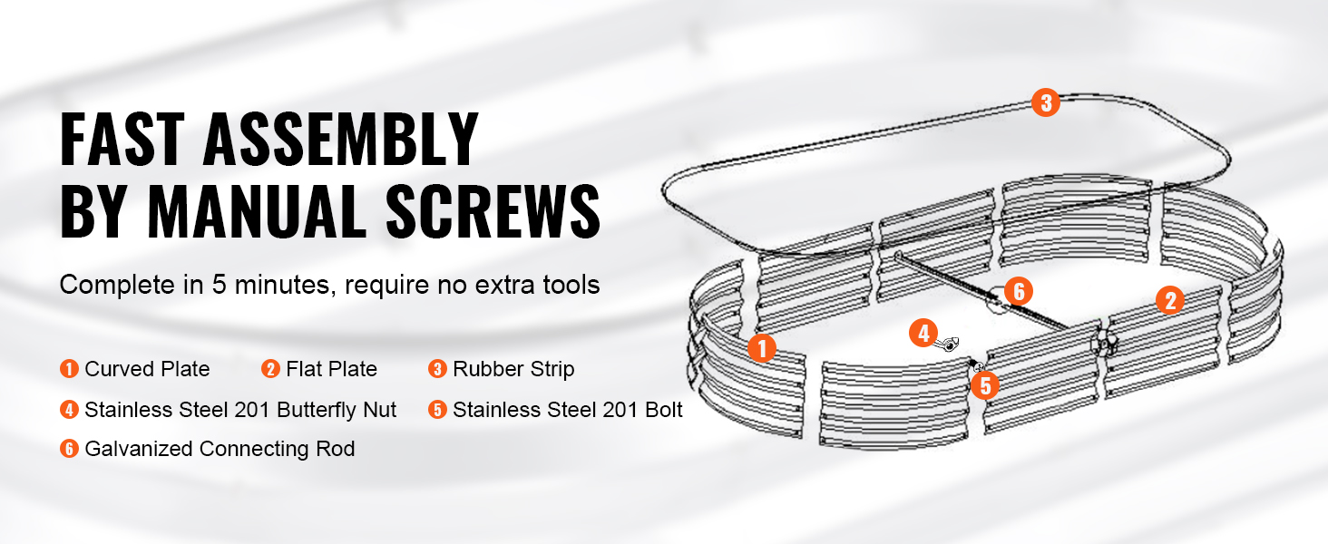 The metal garden bed is equipped with complete accessories, including bolts and nuts. Just connect the plates with screws. You can finish installation in a few minutes.