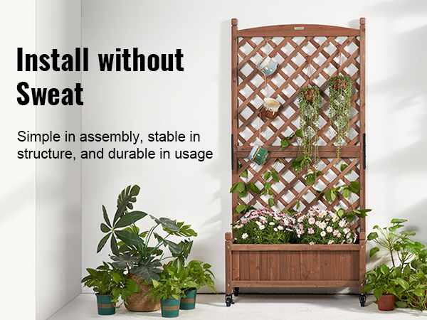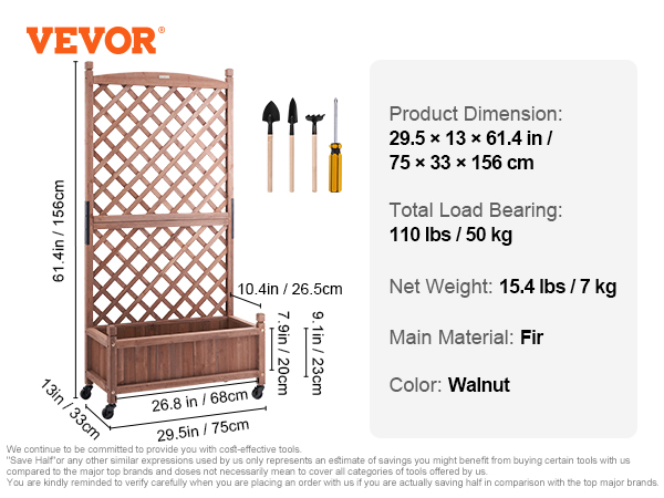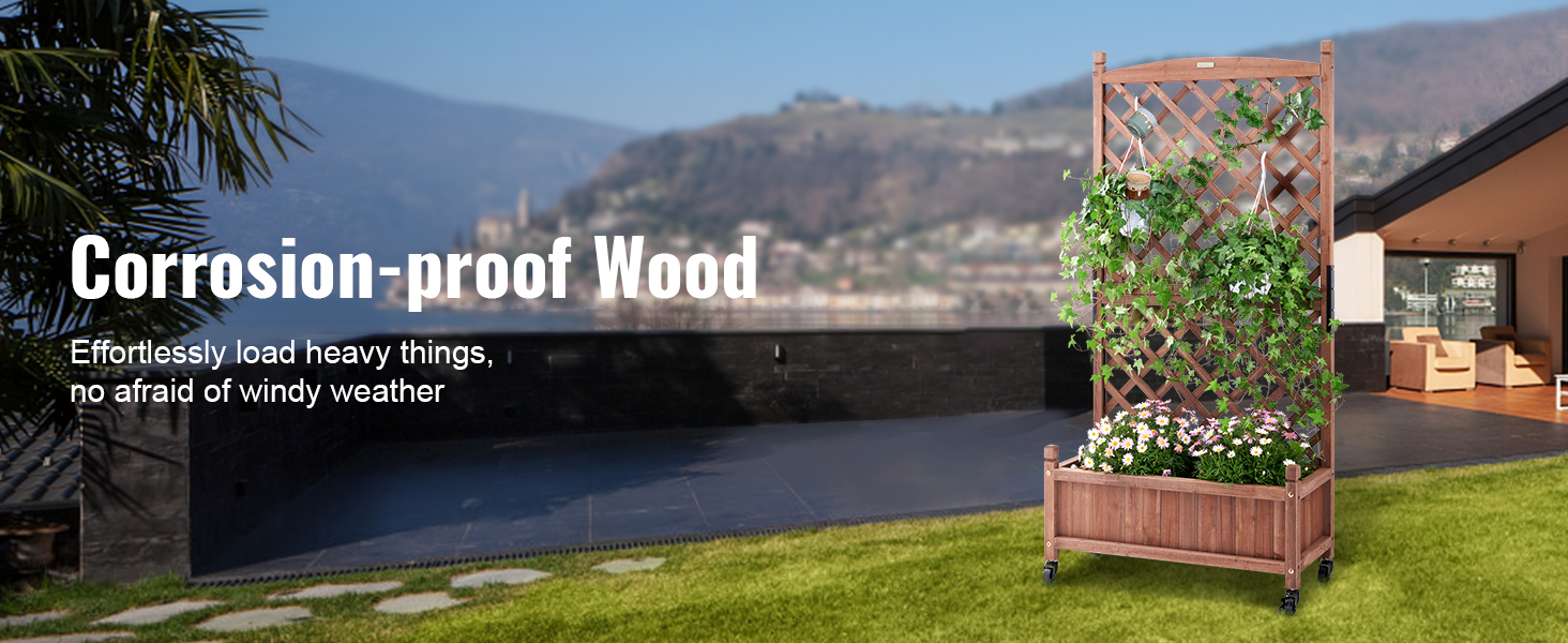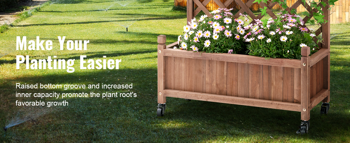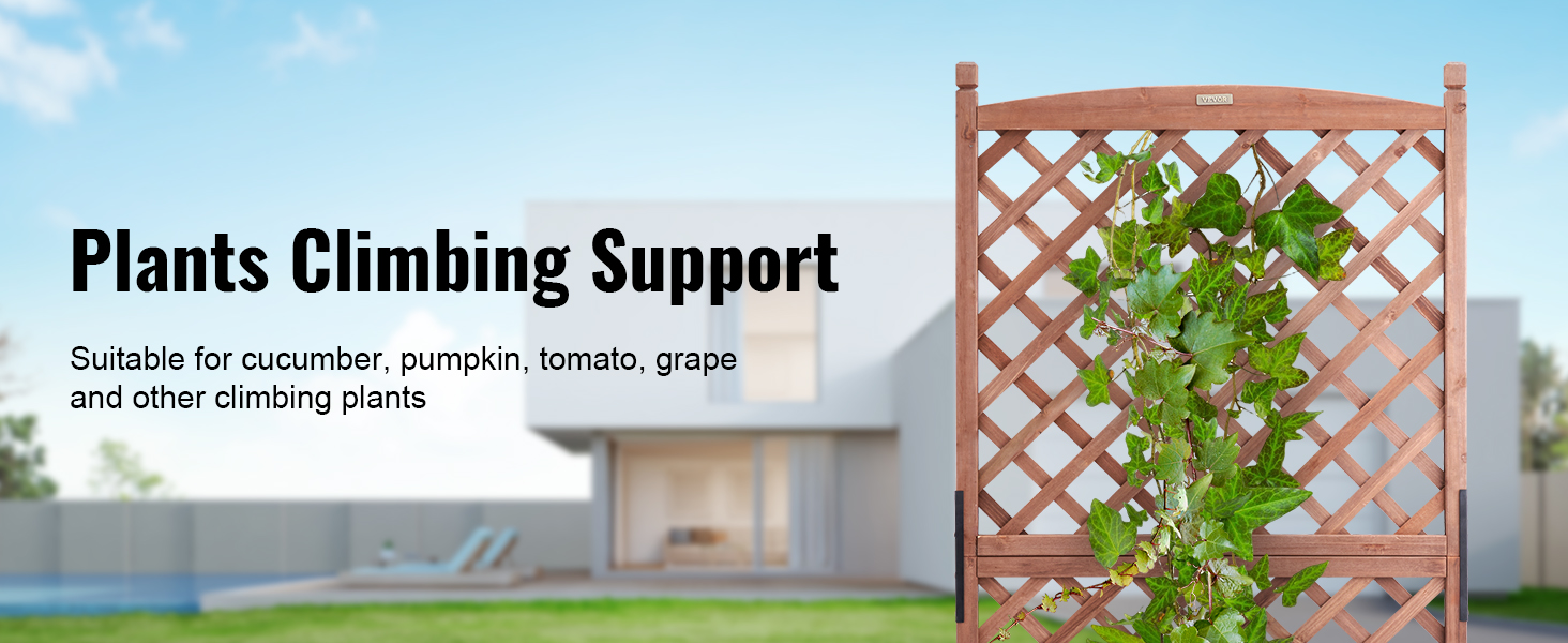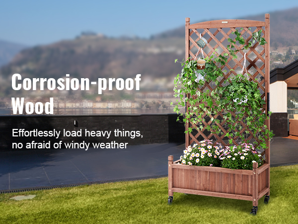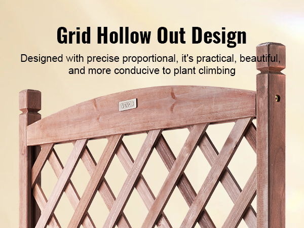 - More Space for More Planting: VEVOR's raised and thickened wood planter with trellis is the perfect addition to make your dream garden a reality. The sturdy frame grid ensures your plants are fully supported, while also allowing climbing vines to reach new heights. With a maximum bearing capacity of 110 LBS, you can plant all your favorite veggies and flowers without worry.