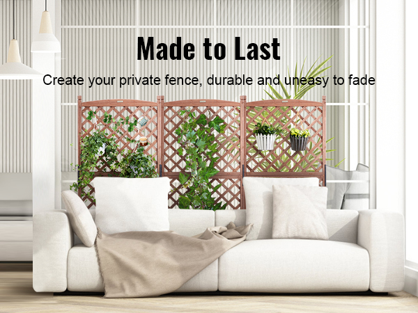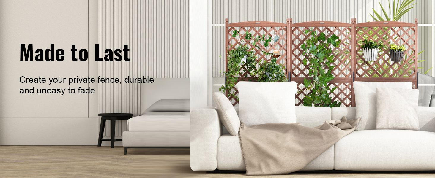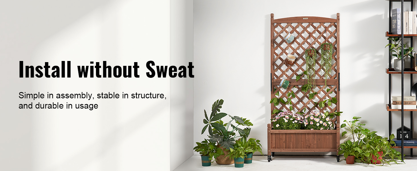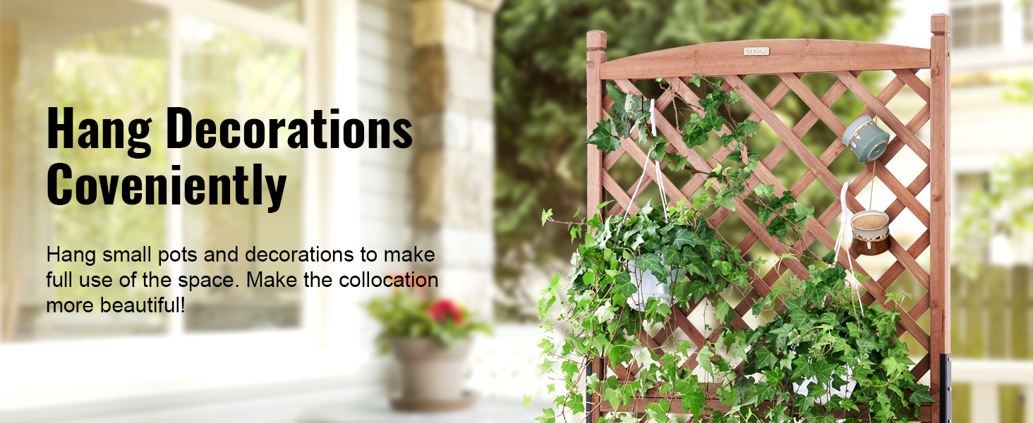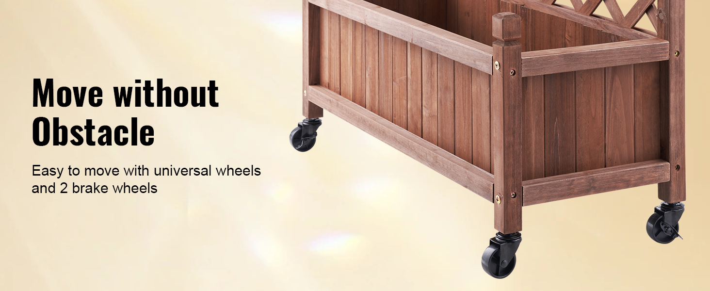 - More Space for More Planting: VEVOR's raised and thickened wood planter with trellis is the perfect addition to make your dream garden a reality. The sturdy frame grid ensures your plants are fully supported, while also allowing climbing vines to reach new heights. With a maximum bearing capacity of 110 LBS, you can plant all your favorite veggies and flowers without worry.