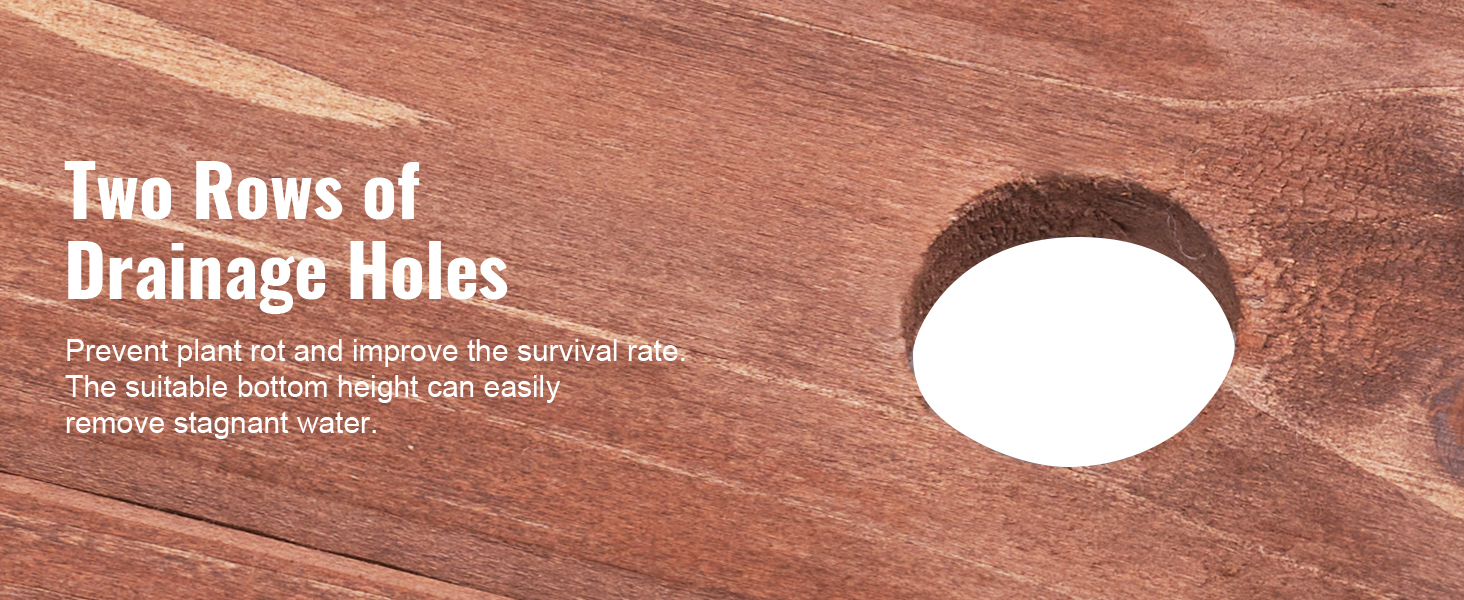 The wood planter is made of high-quality natural fir wood, no chemical materials added, non-toxic and harmless. Rest assured to use indoors and outdoors.