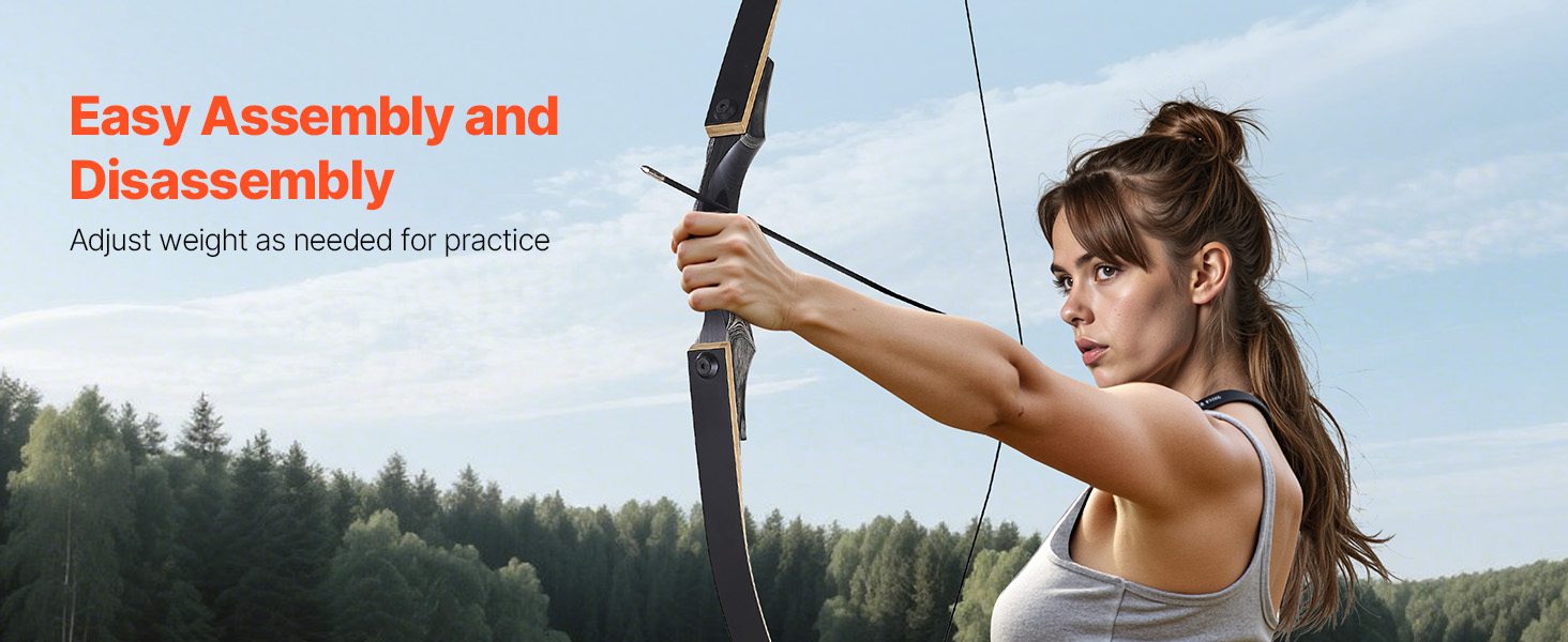 - Easy Assembly and Disassembly: The takedown recurve bow is simple and convenient to assemble and disassemble. Its user-friendly design facilitates regular maintenance and transport, ensuring easy storage and protection against bow damage.