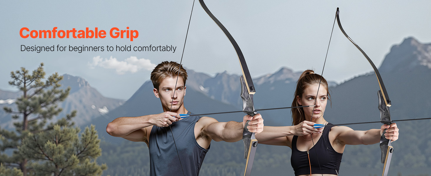 • Ergonomic Design: The recurve bow and arrows kit features a rounded, finely crafted wooden handle that conforms to the natural curve of your hand. This design minimizes fatigue during extended use, enabling sustained focus during archery sessions.