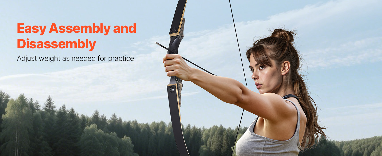 • Easy Assembly and Disassembly: The takedown recurve bow is simple and convenient to assemble and disassemble. Its user-friendly design facilitates regular maintenance and transport, ensuring easy storage and protection against bow damage.