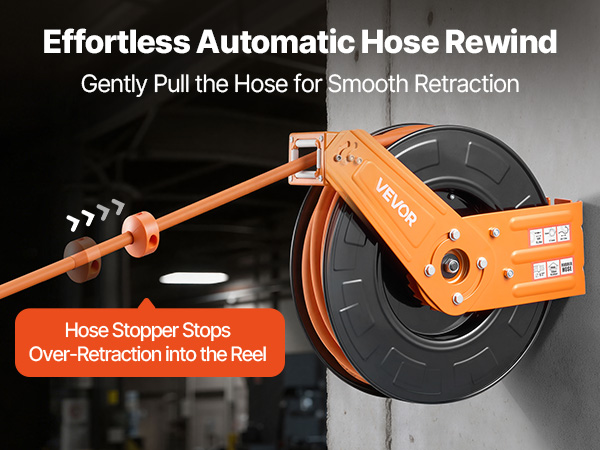 - Auto Rewind: Manage your hose easily with the auto-rewind system — simply pull gently for smooth rewinding. Features an adjustable stopper and built-in ratchet lock to secure the hose at any desired length, and non-snag rollers ensure even guidance to minimize wear.