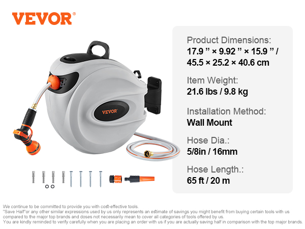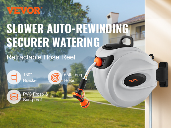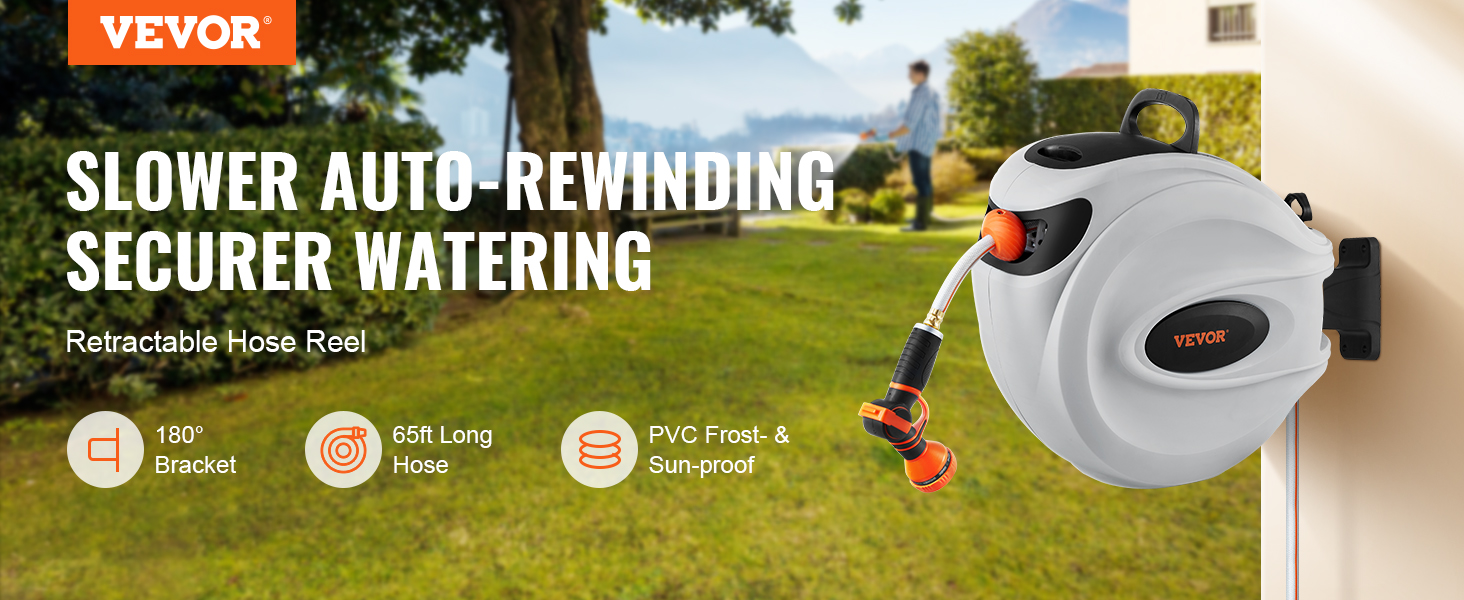 Love your garden but tired of struggling with a traditional hose? VEVOR retractable garden hose reel minimizes manual work and provides enhanced convenience. Get ready to make watering your garden easier and more enjoyable! It is time to spray!