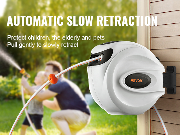 - Auto Rewind System: Regardless of how far the hose is stretched, it can be retracted safely and slowly with a slight pull. Our slow-retractable hose reel is labor-saving and prevents damage or injury caused by rapid retraction. Bid farewell to messy hoses and eliminate the need for manual rewinding.