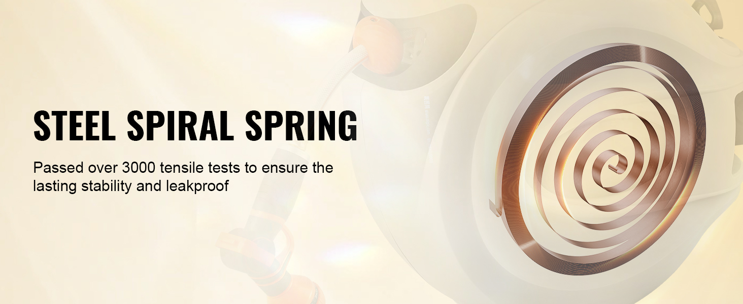 - Stay Locked in Position: Thanks to the locking system, the hose can be locked at any length you desire. Our automatic retractable garden hose reel is pre-installed with a 65ft x 5/8 inch hose, covering every corner of your garden. It features a built-in steel coil spring that has passed a tensile test more than 3000 times, making it smooth and non-aging throughout long-term stretching.