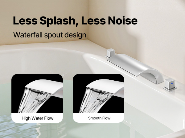2 reviews for Roman Tub Faucet, 3 Hole Waterfall Bathtub Faucet, Bath Tubs Faucets Set with 2 Handles, Deck Mount Bath Tub Faucets Set for Adult Bathing, Silver, Waterfall Spout Design, Temperature Control