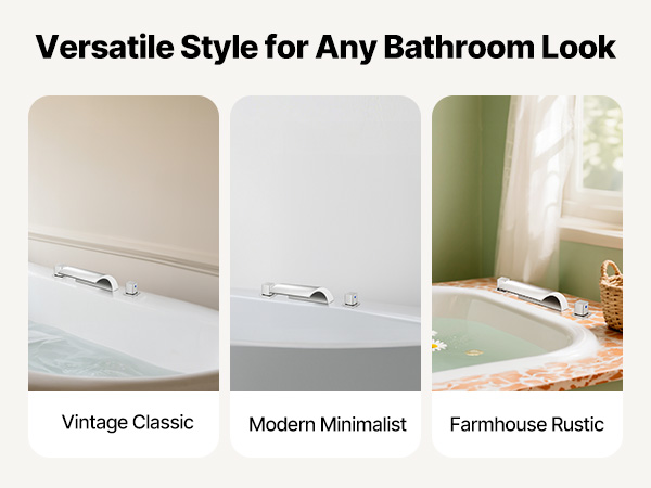 Built for visual harmony, this roman tub faucet deck mount adapts to modern, rustic, or traditional bathroom designs. Its stylish form and neutral finish blend in easily while helping elevate the overall ambiance of your bathing space.