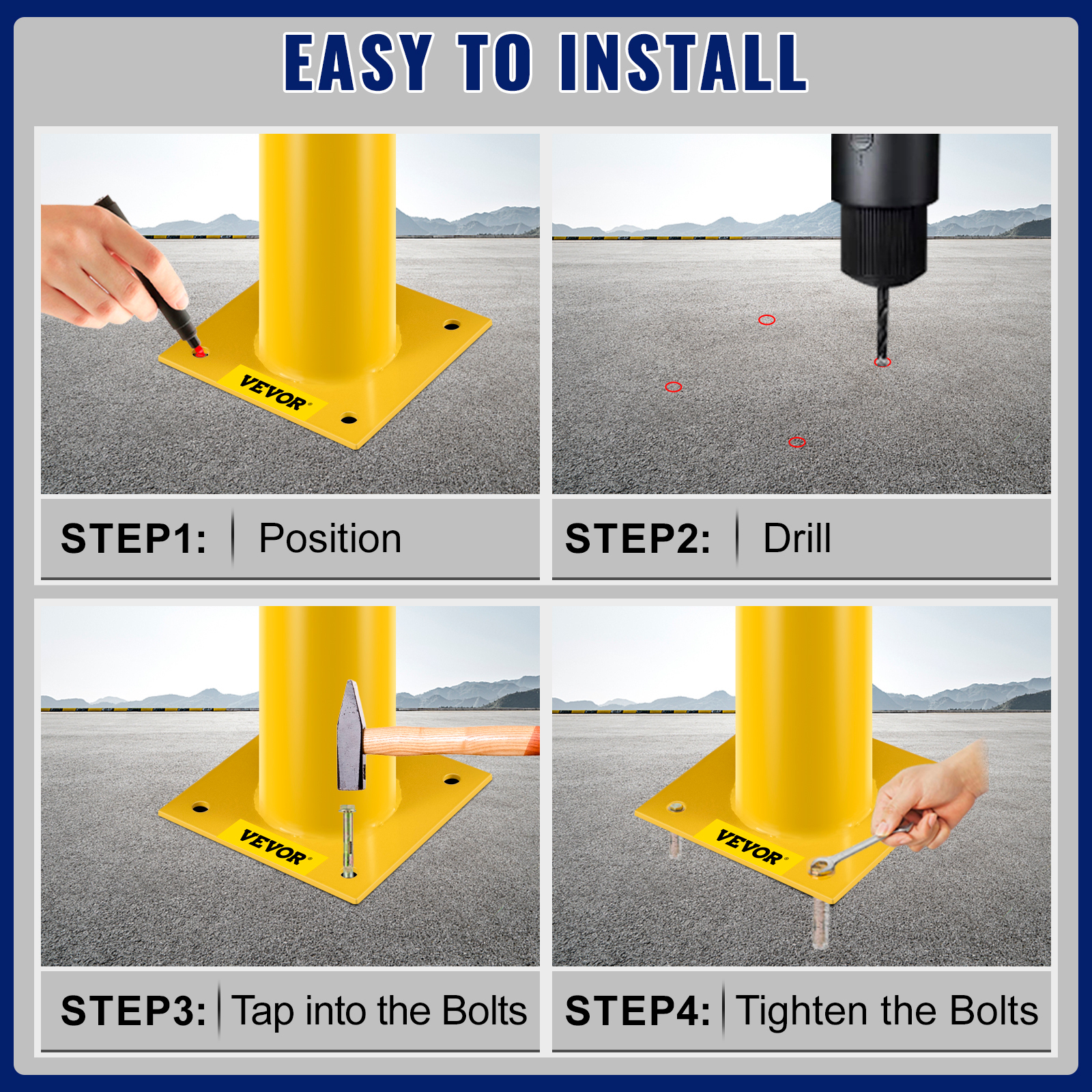 - Set Up in No Time: Installation is rapid, thanks to pre-drilled mounting holes. Simply locate the ideal position, drill the holes, tap into the included anchor bolts, and tighten. Concrete can be combined with steel bollards to enhance security. You'll be prepared to prevent accidents before they occur.
