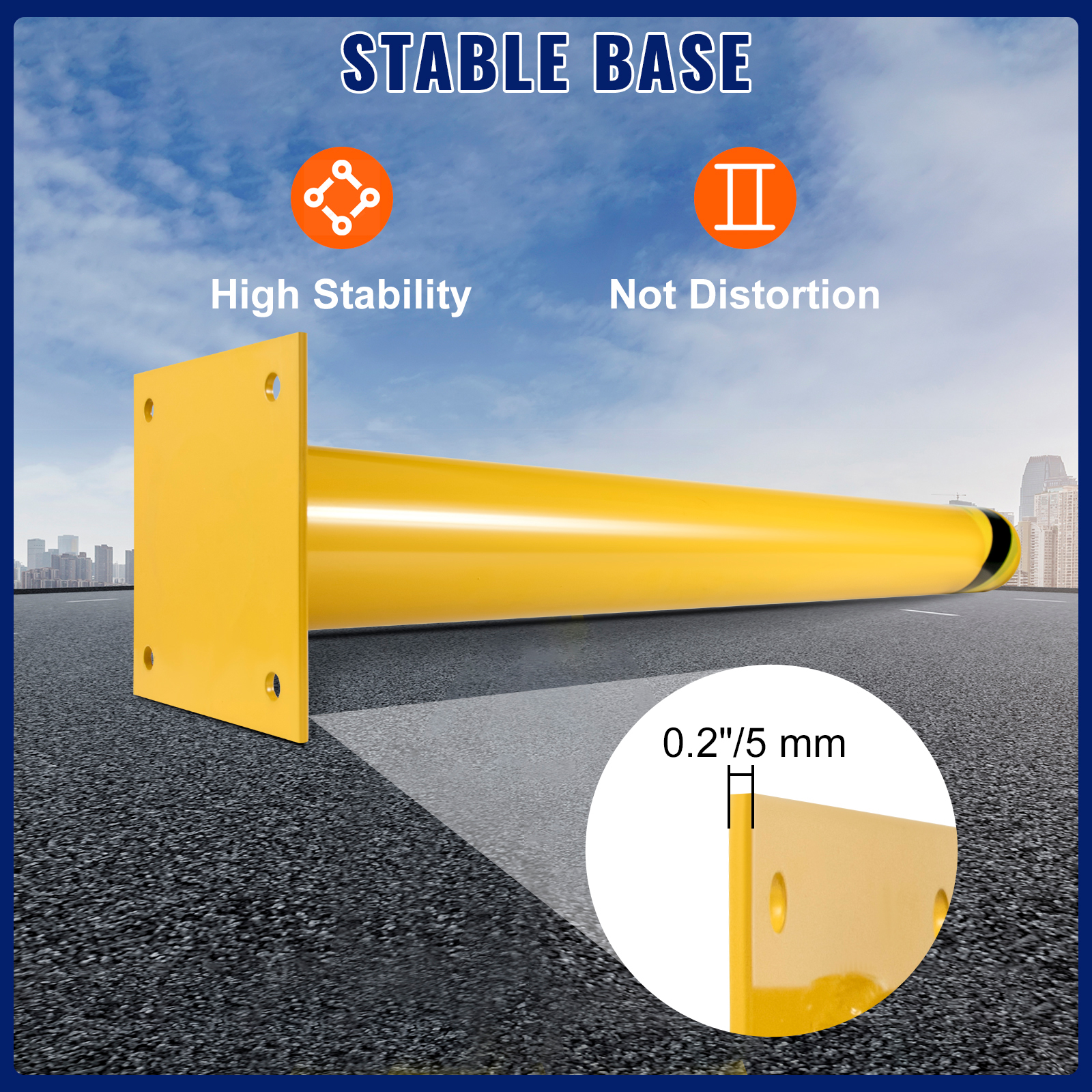 - Quality That Speaks for Itself: 36-inch (91.4 cm) height and 4.5-inch (11.4 cm) diameter with a 7.9×7.9-inch mount base. 0.2"/5 mm thickened base allows you to anchor for maximum stability. Our safety barrier bollards are high-quality, heavy-duty, and dependable, making your life easier!