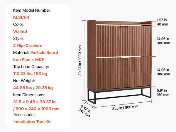 - Stable and Sturdy: An anti-tip device secures the shoe cabinet to the wall, reducing the risk of tipping. Made from particleboard for strength and durability. The top surface can support up to 110.23 lbs / 50 kg, suitable for decorations or storage baskets.