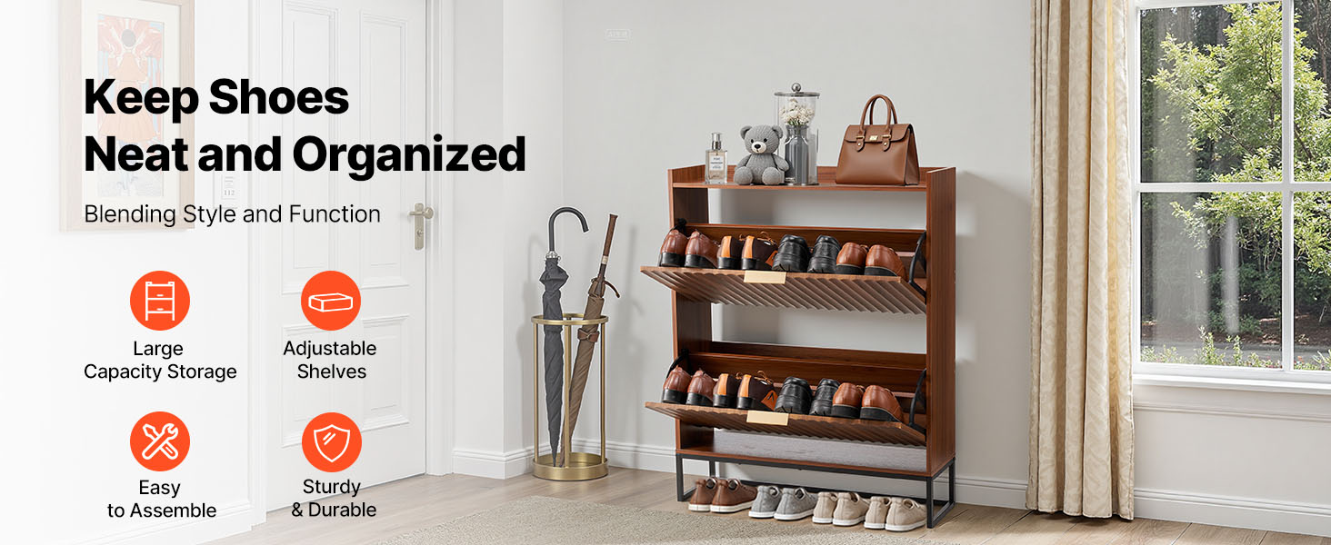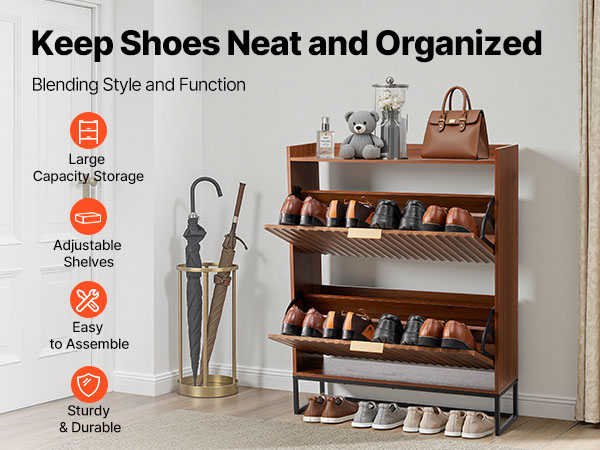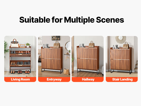 - Mid-Century Style: This shoe storage cabinet features a stylish and minimalist design that complements any home decor. Ideal for living room, hallway, entryway, or foyer, it helps create a neat and organized home environment while adding elegance.