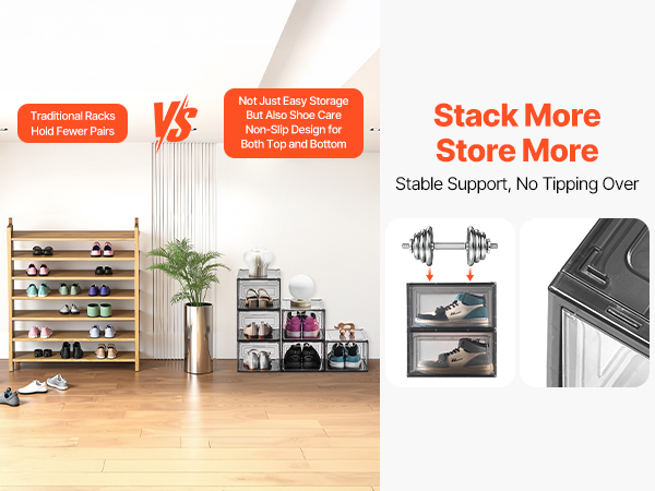 - Stackable Design: Top and bottom non-slip features ensure stable stacking, making clear shoe boxes easy to organize in any corner of your home. The reinforced material supports additional boxes, enabling you to store more shoes and maintain a tidy space.